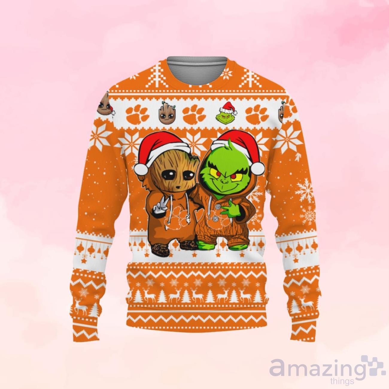 Clemson Tigers Baby Groot And Grinch Ugly Christmas Sweater Informations: