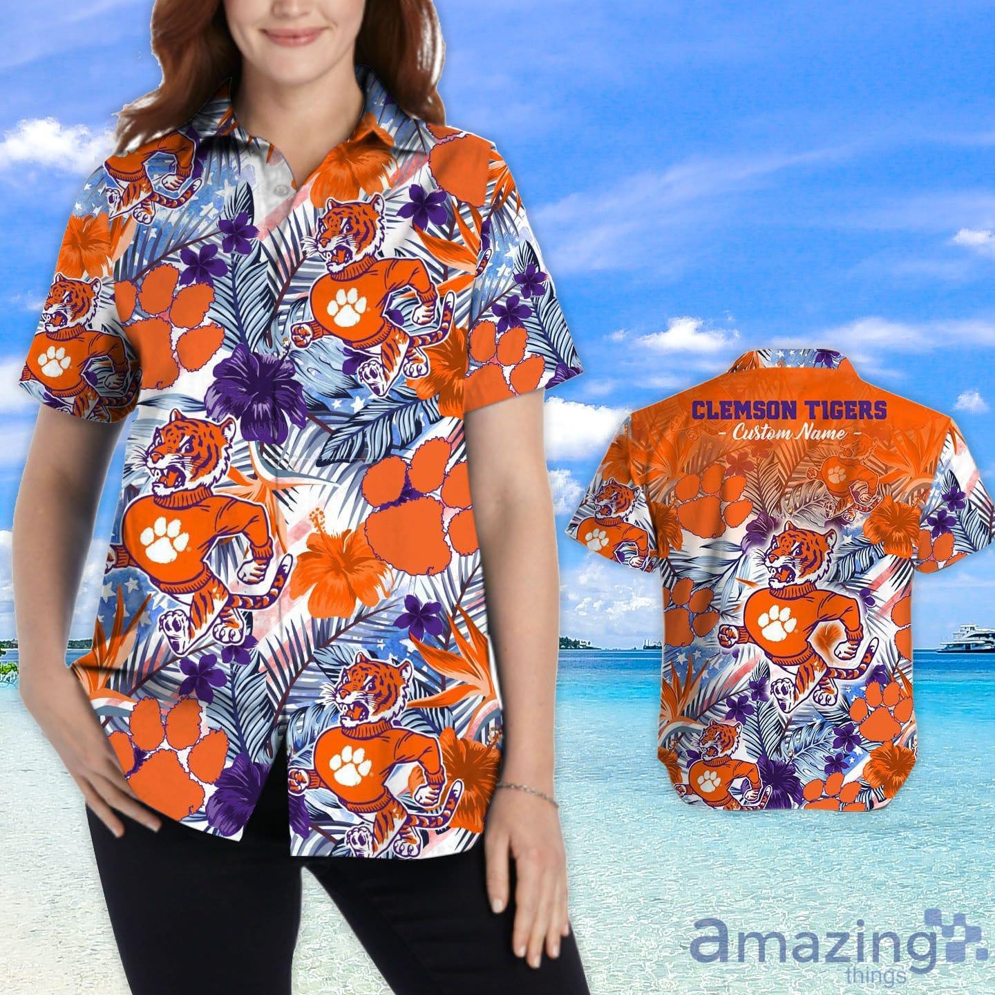 Clemson Tigers Tropical Floral Custom Name Aloha Hawaiian Shirt Details: