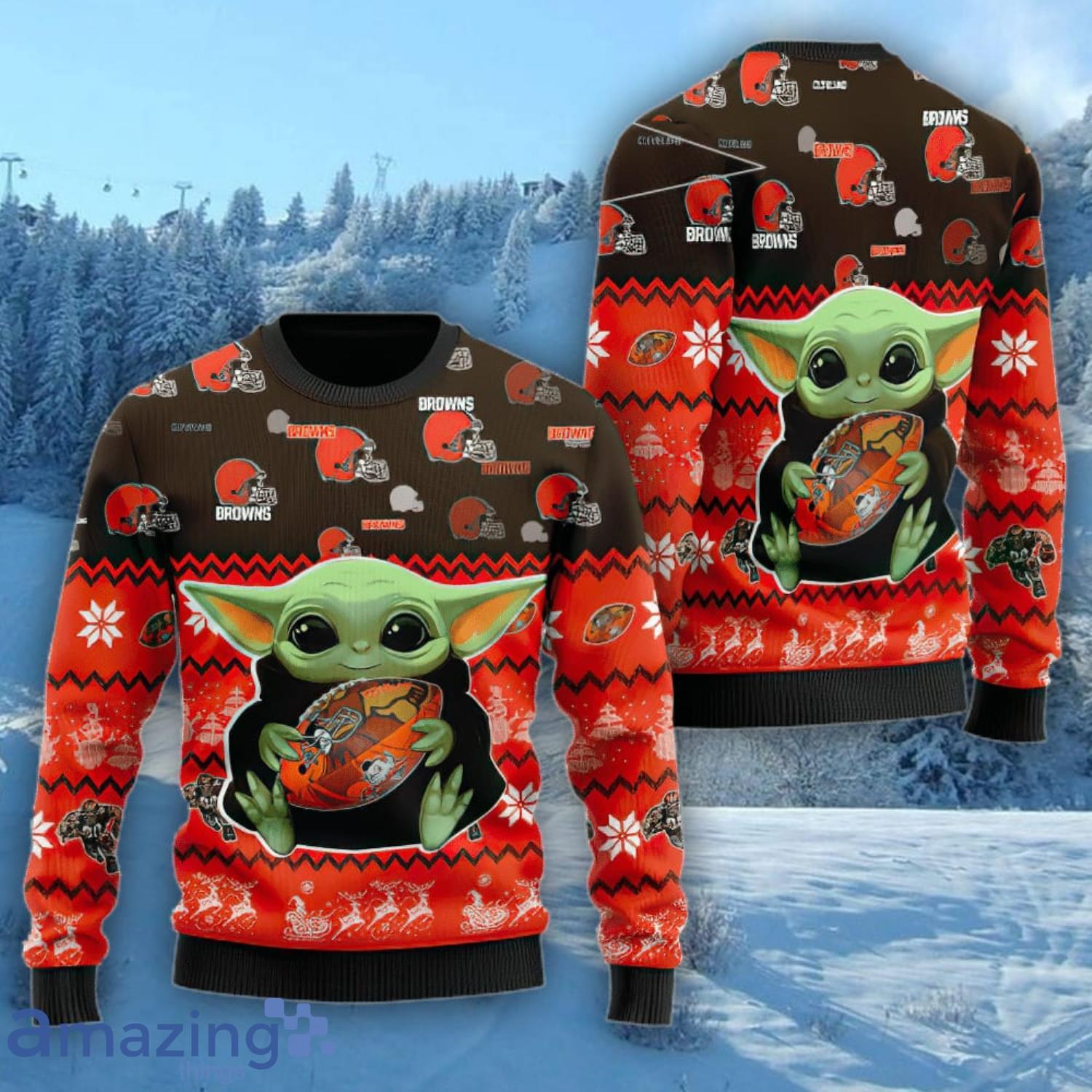 Cleveland Browns Baby Yoda Lover American Football Fans 3D Ugly Christmas Sweater Christmas Gift For Sport Fans Information