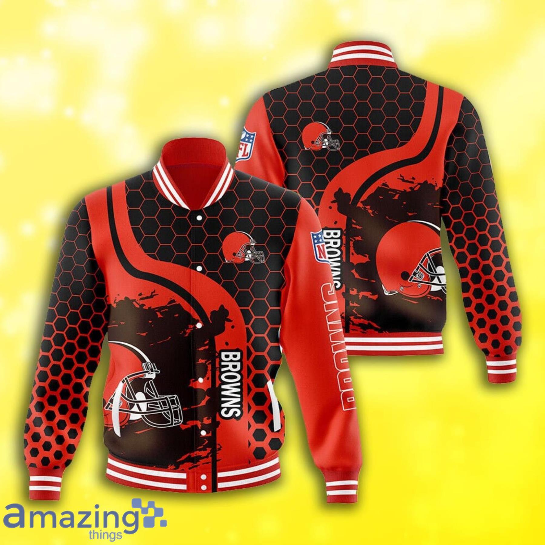 Cleveland Browns Grunge Texture All Over Print Baseball Jacket