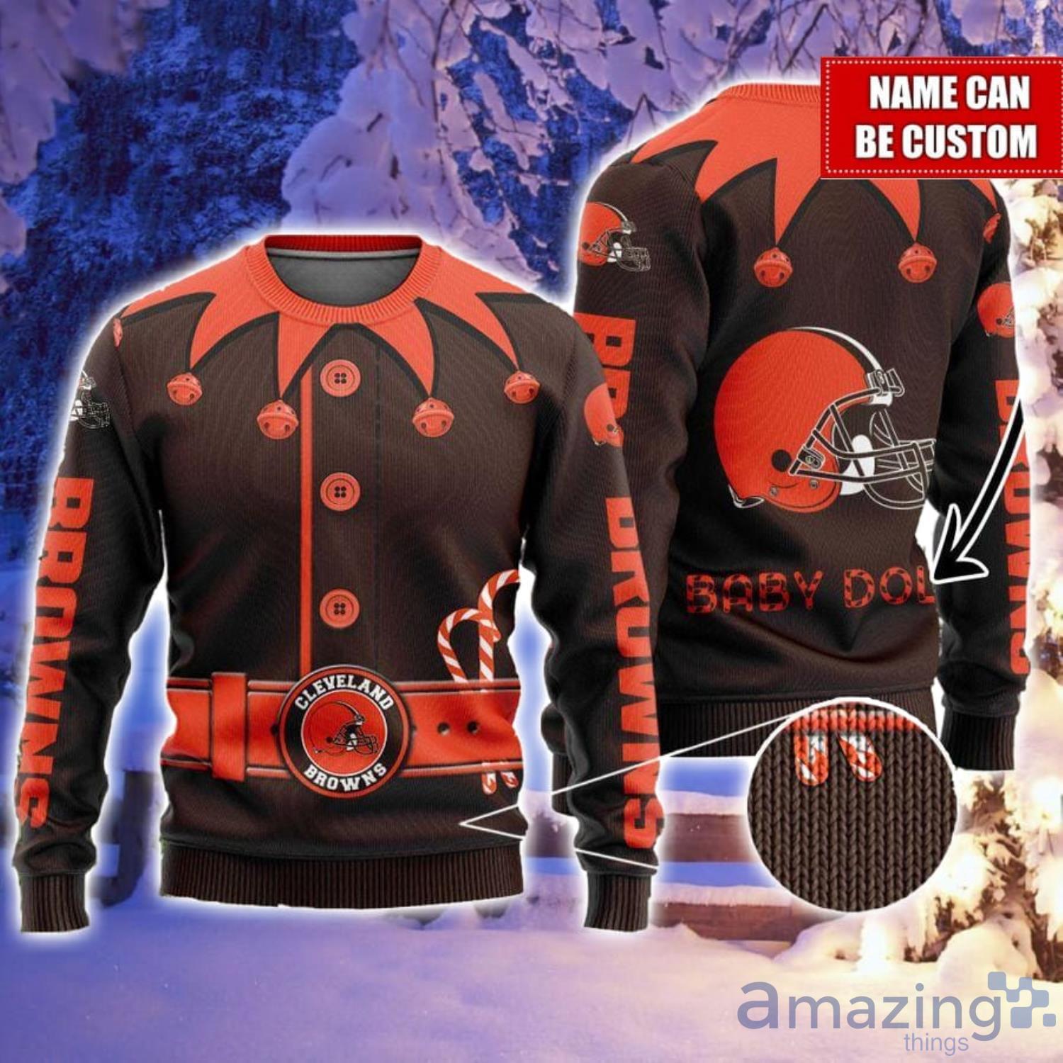 Some of the Cleveland Browns NFL Football Custom Name Ugly Christmas Sweater photos