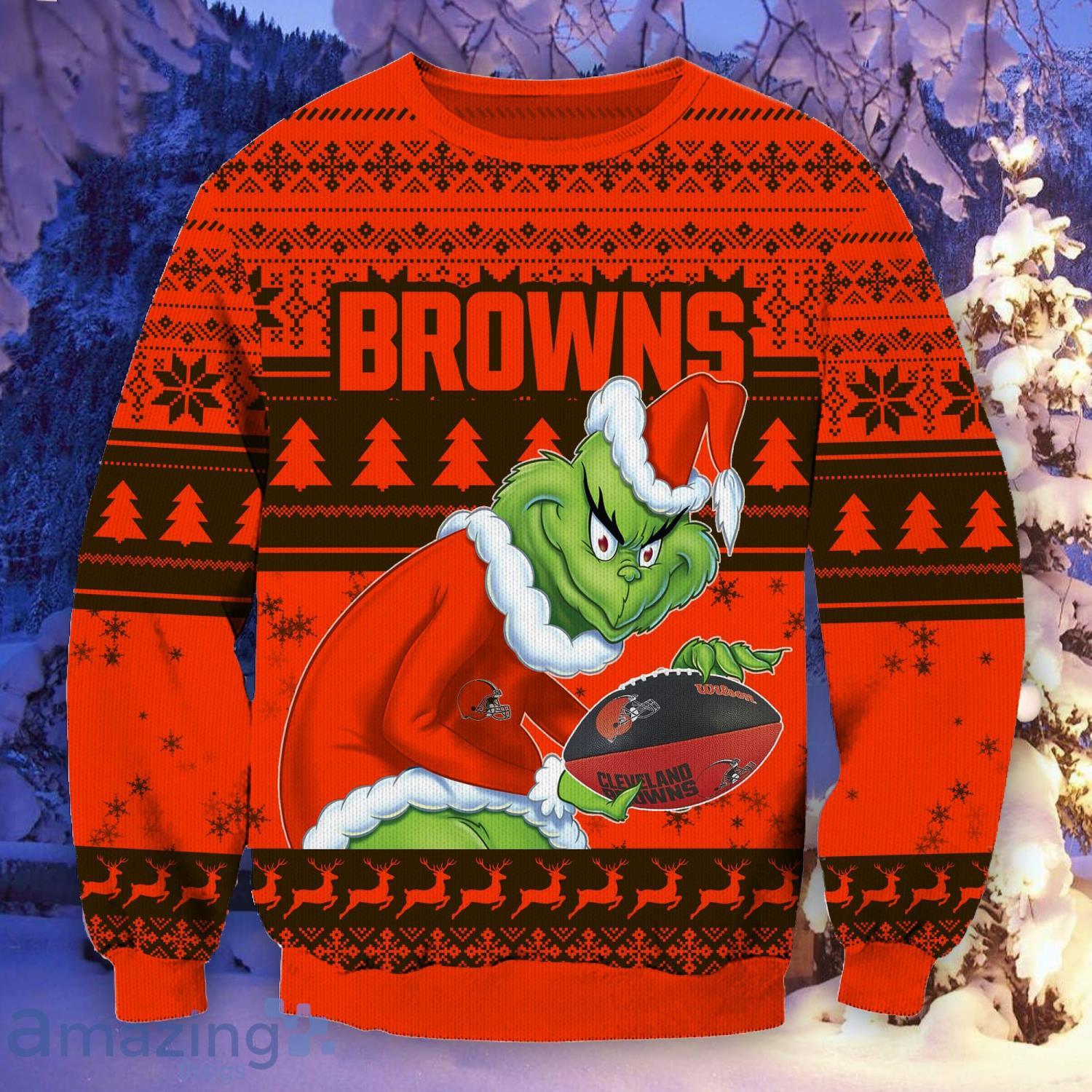 Spread holiday cheer while supporting your favorite team with our Cleveland Browns Ugly Grinch Christmas Sweater. Order yours today and let the festivities begin!