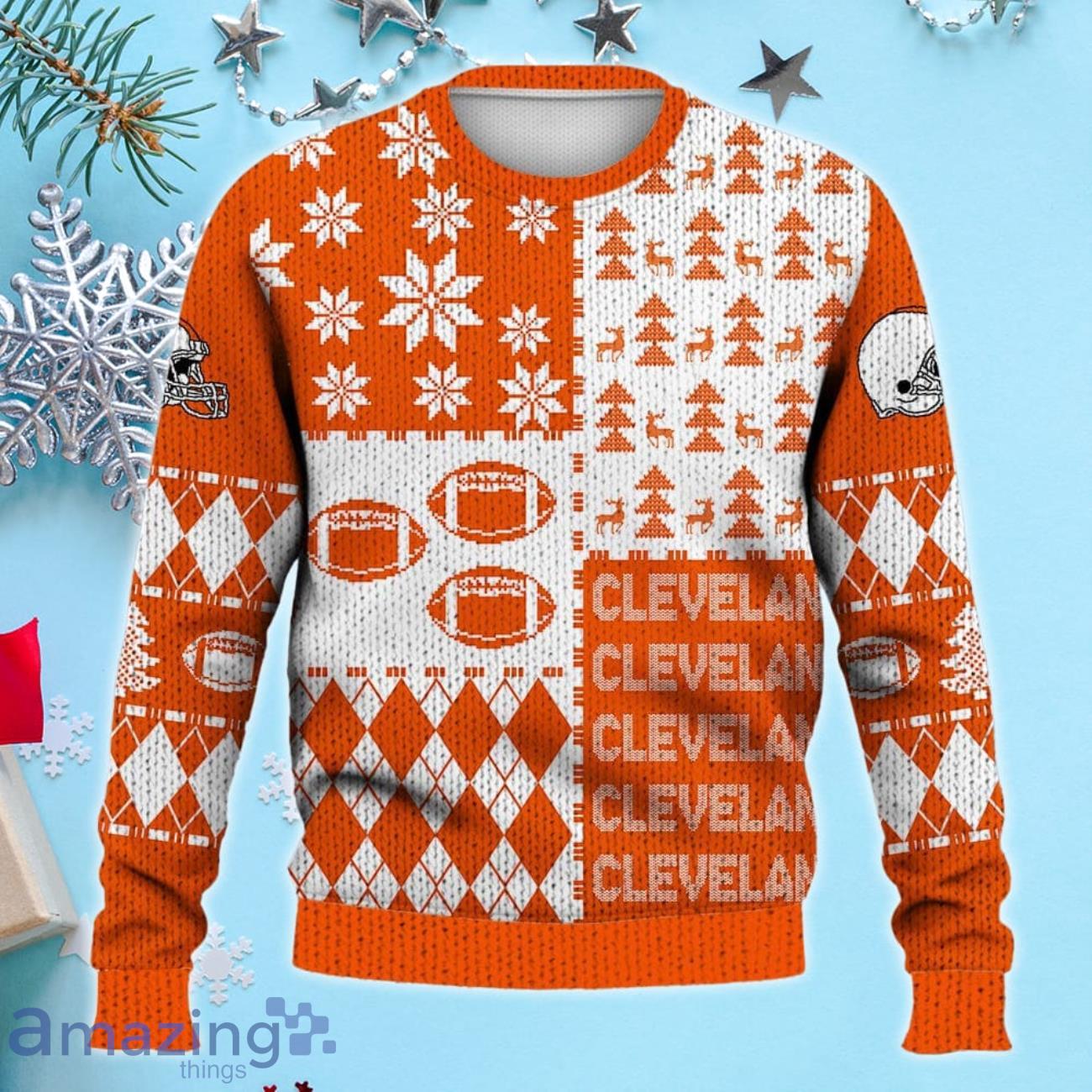 Get into the festive spirit with our Cleveland Ugly Sweater Christmas sweatshirt! Designed with a retro football American sweatshirt pattern, this 3D masterpiece is an absolute must-have for all fans. Made with premium quality materials, this sweatshirt guarantees comfort and durability, keeping you cozy throughout the holiday season. Its eye-catching design showcases your love for Cleveland football in a fun and stylish way. Whether you’re heading to a holiday party or watching the game from the comfort of your own home, this sweatshirt is the perfect way to show off your team pride. Don’t miss out on this iconic piece that combines Christmas cheer with your passion for football. Grab your Cleveland Ugly Sweater Christmas sweatshirt today and spread the holiday cheer!