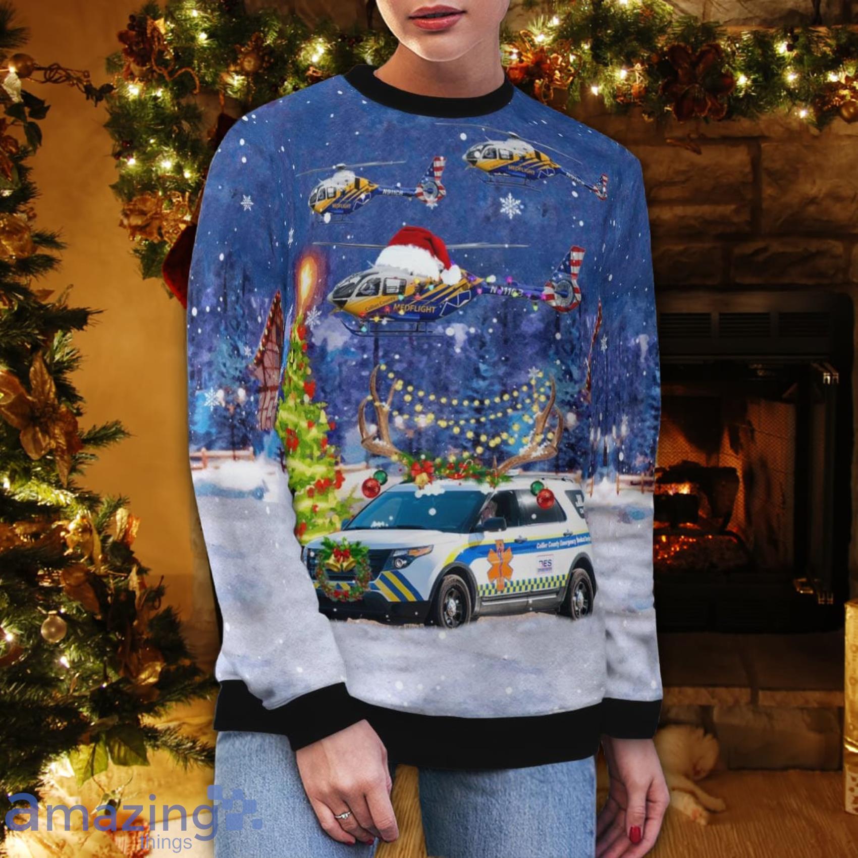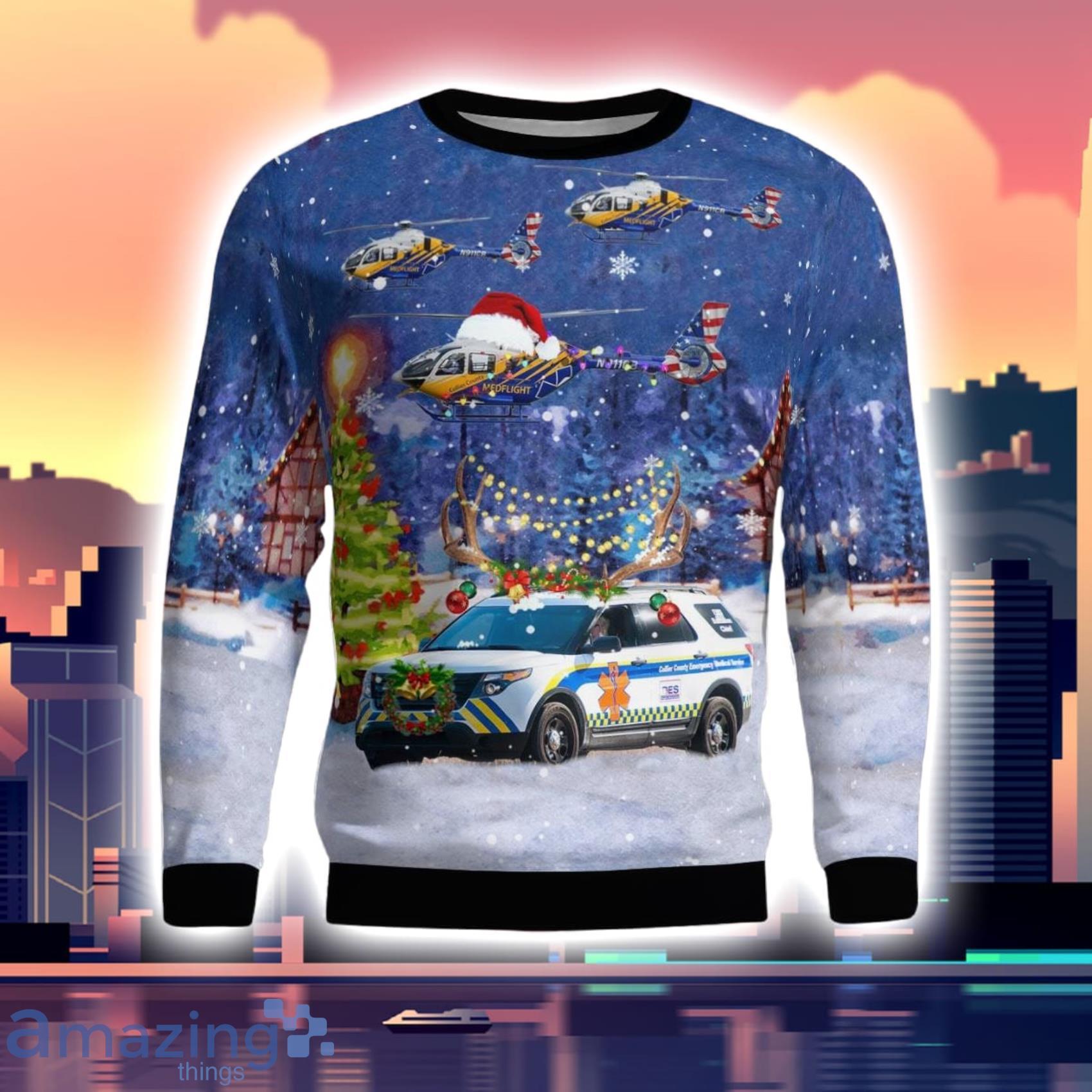 Collier County Ems Ford Explorer & N911cb Airbus Helicopters H135 Ec135t3 Cn 2105 Christmas 3D Ugly Sweater