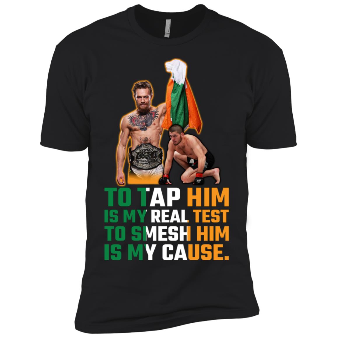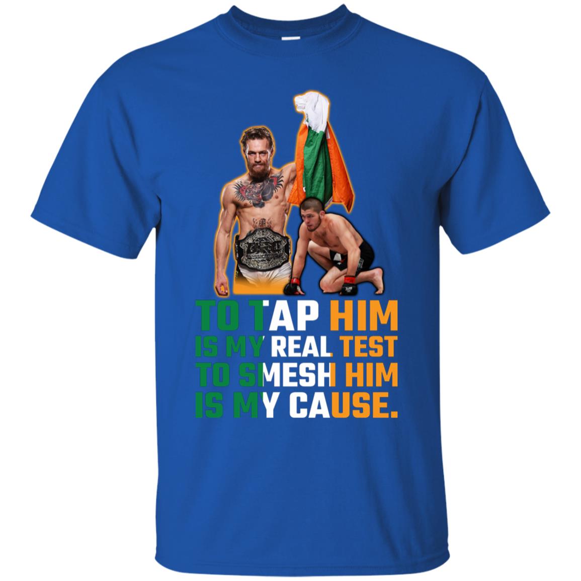 This specific quote, “Tap Him Is My Real Test Smesh Him Is My Cause,” reflects the complex psychology often seen in high-level competition. The “real test” isn’t just about securing a victory, but doing so in a decisive, submission-based manner (“Tap Him”). Conversely, “Smesh Him Is My Cause” embodies the raw, powerful desire to utterly dominate and finish an opponent through strikes (“Smesh Him,” a term popularized by Khabib Nurmagomedov, often used in jest or reference in the MMA community). The juxtaposition highlights the multi-faceted approach and intense focus required to reach the pinnacle of fighting, blending technical challenge with overwhelming force. Wearing this Conor McGregor Shirt is a way for fans to connect with this fighting philosophy.