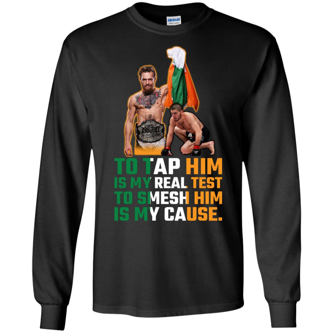 The Conor McGregor Tap Him Is My Real Test Smesh Him Is My Cause Shirt is a compelling piece of merchandise for anyone who follows “The Notorious” and the world of MMA. It encapsulates a famous quote that speaks to the heart of competitive drive and determination. Available as a Conor McGregor T-shirt, Conor McGregor Hoodie, Conor McGregor Long Sleeve Shirt, or Conor McGregor Sweatshirt, there’s a style for every fan. Wearing this shirt is an excellent way to celebrate Conor McGregor’s impact on the sport and showcase your own appreciation for his unique philosophy.