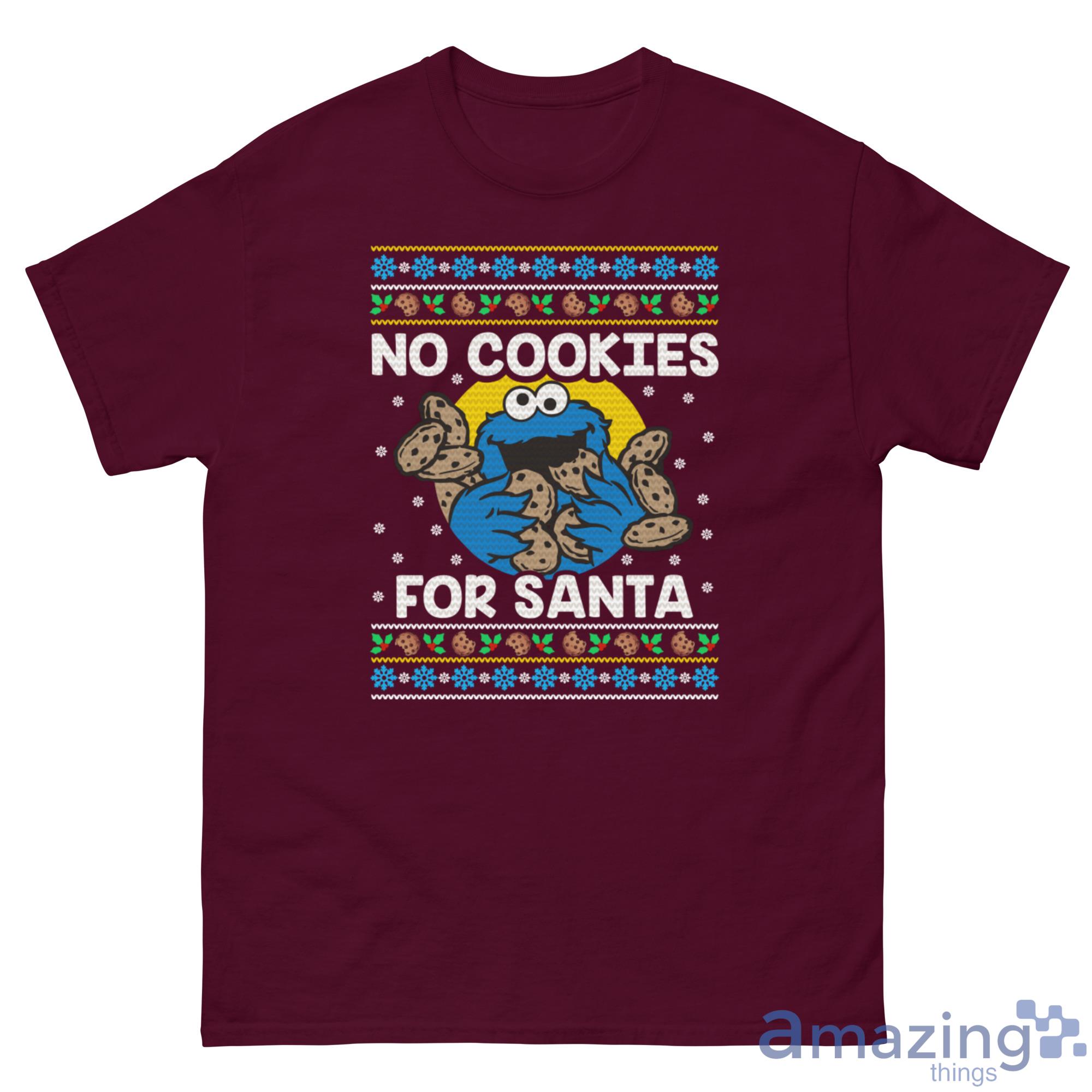 Looking for a festive and fun Christmas sweatshirt? Look no further than this Cookie Monster No Cookies For Santa sweatshirt! Perfect for anyone who loves the holidays and wants to show their festive spirit, this sweatshirt is sure to bring a smile to everyone's face. Made from a soft and comfortable material, it's perfect for staying warm during the cold winter months. So don't wait – order your Christmas Sweatshirt today!