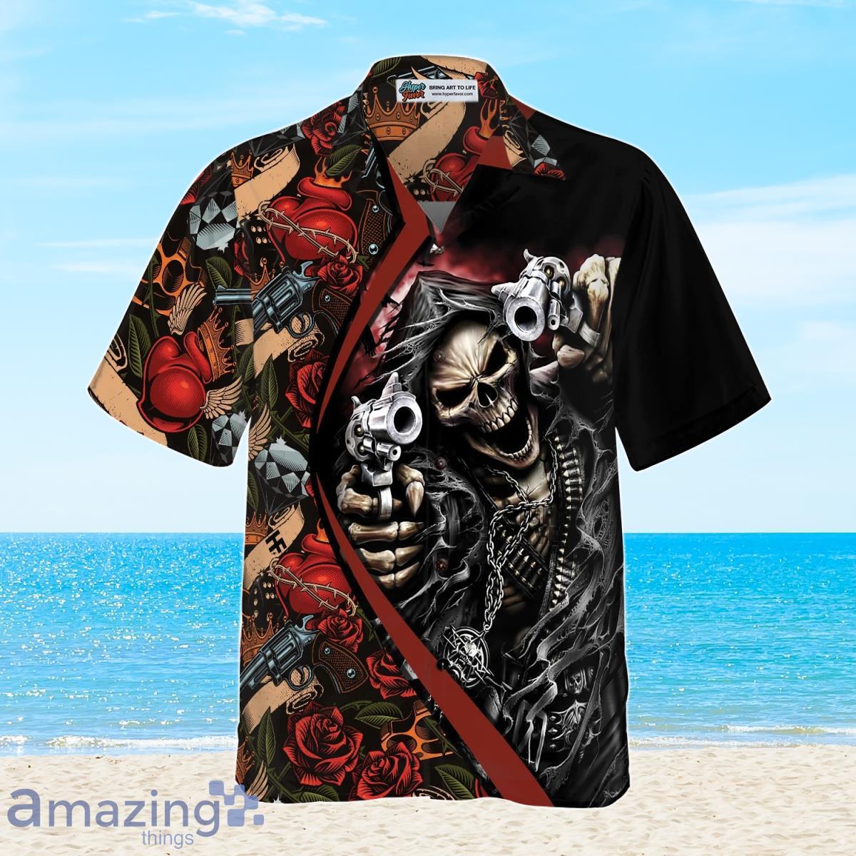 Some of the Cool Gun Skull Hawaiian Shirt For Men And Women photos