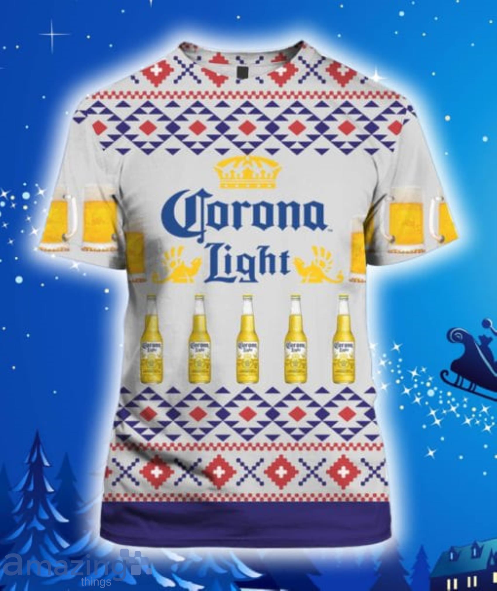 Perfect design for holiday. Get yours this shirt or this is a cute item for your daddy, gift for your mom, and gift for friends on any occasion. buy a cute Corona Light Beer All Over Print 3D Hoodie, T-Shirt, Christmas Sweater now.