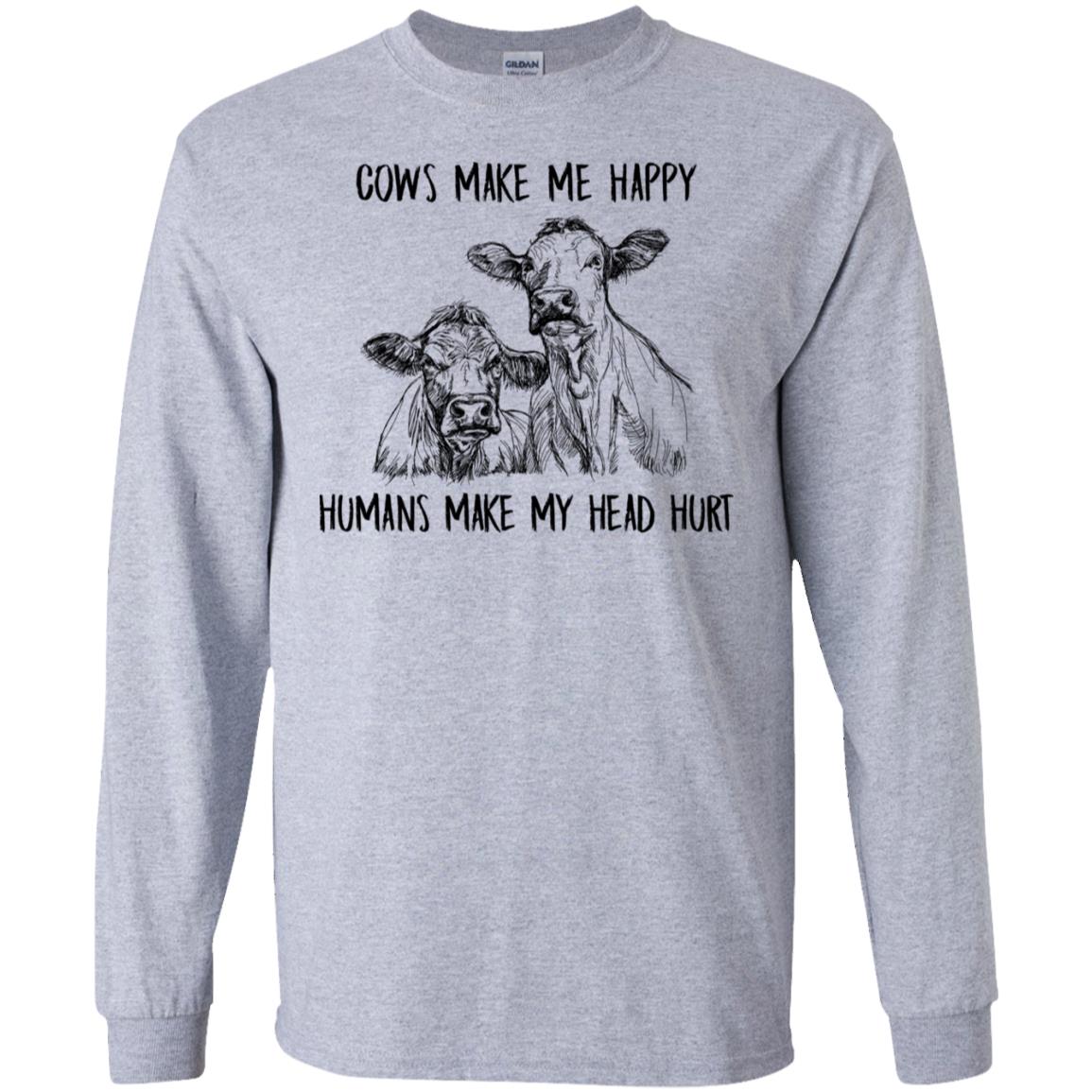 The popular message “Cows Make Me Happy Humans Make My Head Hurt” is available across a range of comfortable and stylish options, ensuring you can wear your heart (and your humor) in any weather or setting. Beyond the classic t-shirt, you can find this design on cozy hoodies, versatile long sleeve shirts, and warm sweatshirts. This variety makes it easy to choose the perfect style for lounging at home, heading out casually, or layering up on cooler days. Each option is crafted for comfort and durability, becoming a go-to piece in your collection.