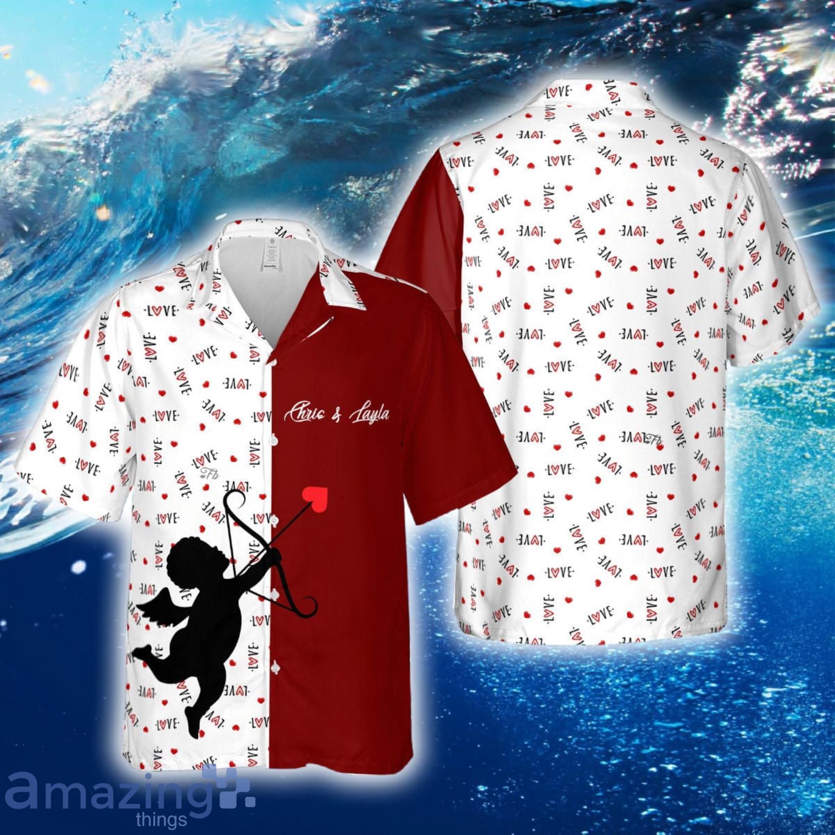 Looking for a unique and personalized Hawaiian shirt and beach short set that will make heads turn? Look no further than our Cupid Angel Artwork Custom Name Hawaiian Shirt and Beach Short combo!