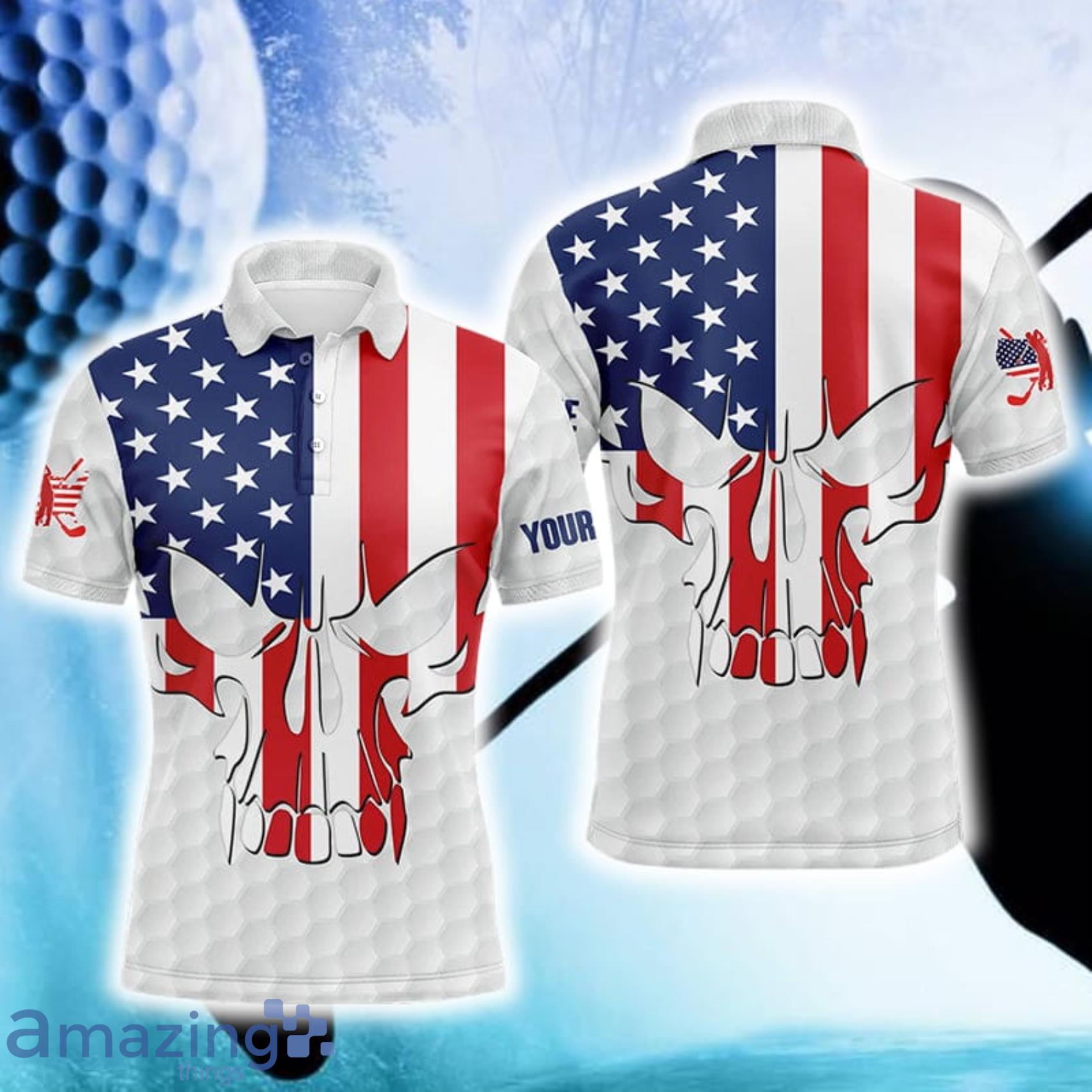 Custom Name American Flag And Skull All Over Print White Polo Shirt For Men And Women Information: