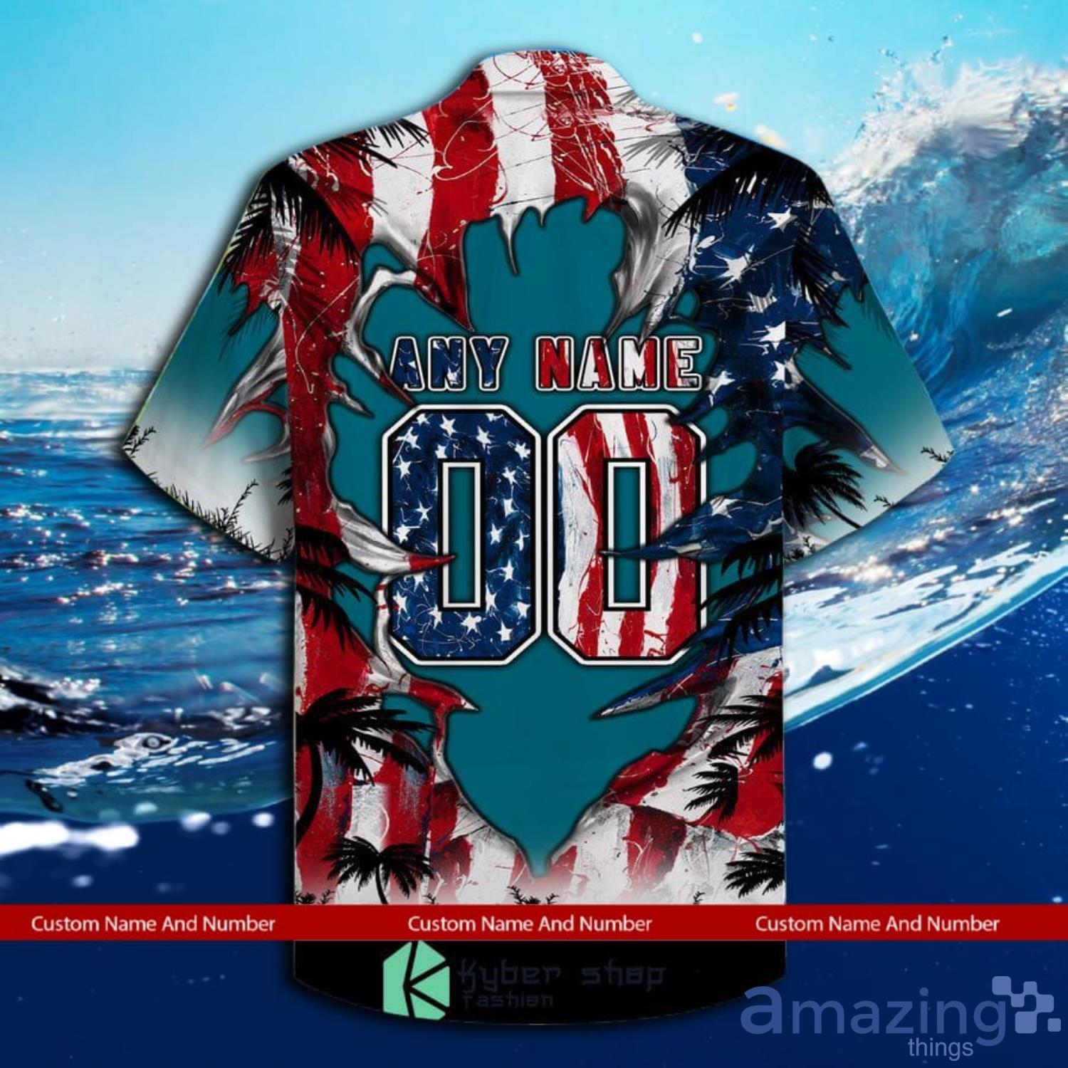 Custom Name And Number Jacksonville Jaguars Us Flag Demon Face Hawaiian Shirt Details: