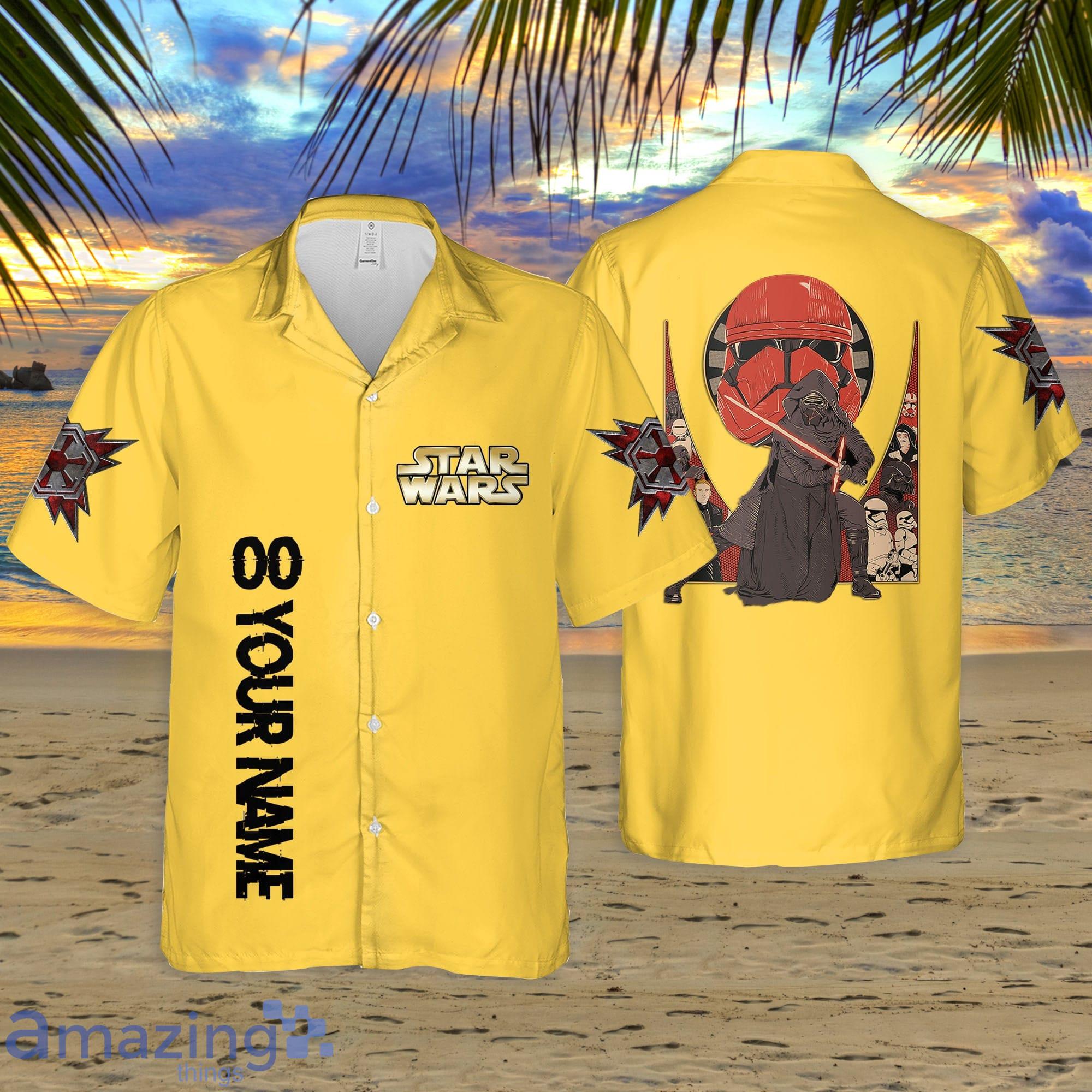 Get ready to showcase your love for Star Wars with our Custom Name And Number Starwar Yellow 3D Short Sleeve Hawaiian Shirt! This summer, stand out from the crowd and make a stunning fashion statement with this amazing shirt – perfect for every Disney fan out there. Made from high-quality material, this shirt is designed to provide you with ultimate comfort and style during those hot summer days.