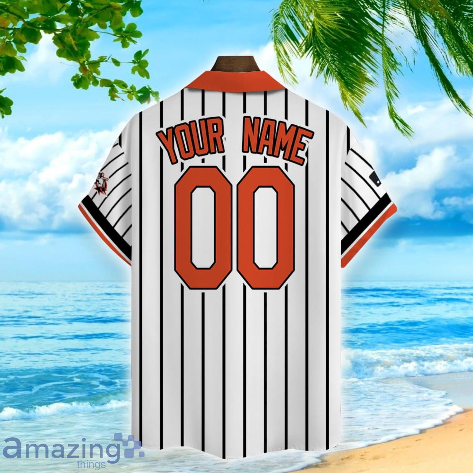 Custom Name And Number Striped Style Baltimore Orioles Baseball Hawaiian Shirt Details: