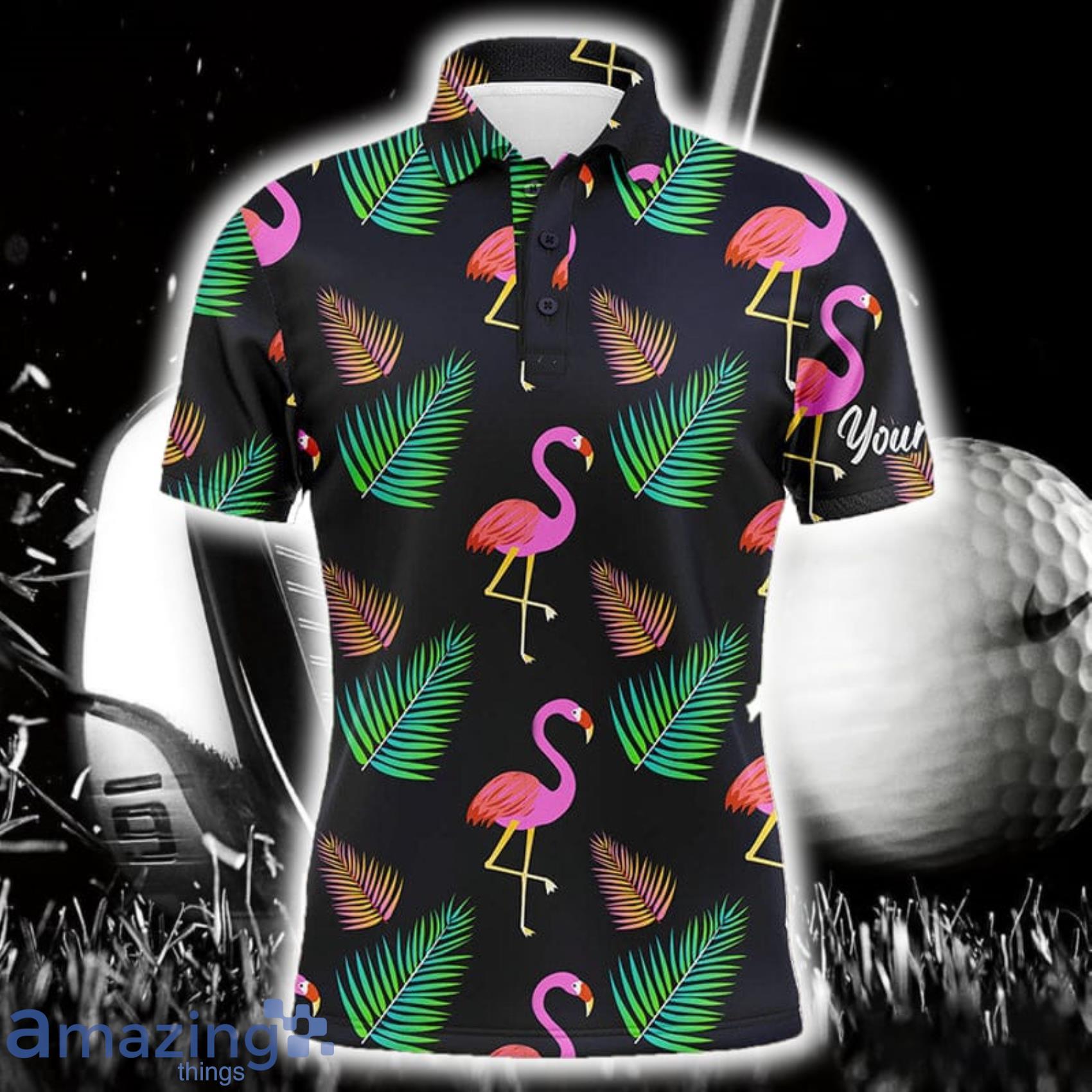 Custom Name And Team Name Neon Flamingos Palm Leaves Pattern Polo Shirt For Men And Women Gift For Golfer Information: