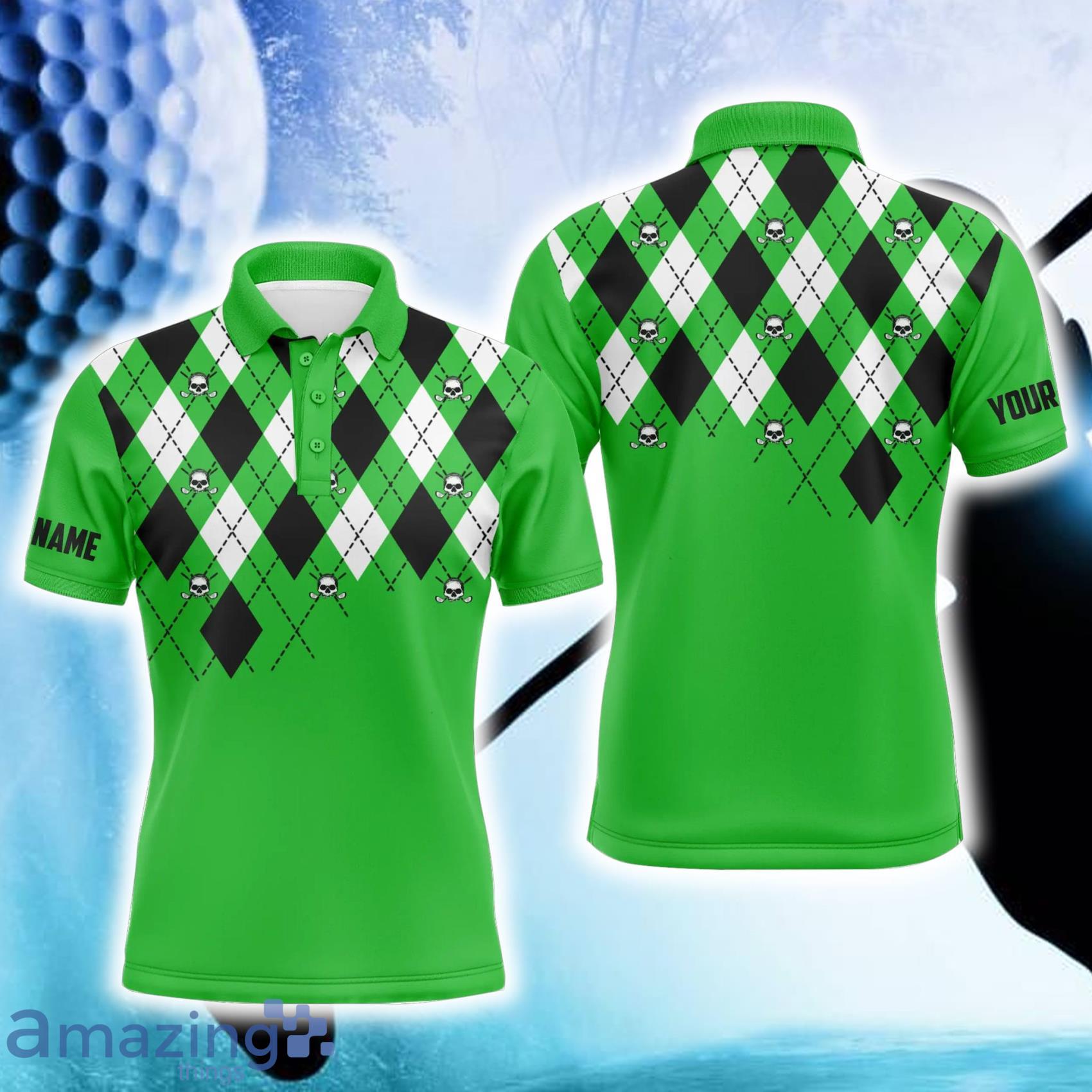 Looking for a unique and stylish polo shirt that caters to your size and preference? Look no further than our Custom Name And Team Name Plus Size Green Argyle Plaid Golf Skull Pattern Polo Shirt! Perfect for both men and women, this shirt is a must-have for any golf enthusiast. Featuring a trendy green argyle plaid pattern and a skull graphic, this shirt is sure to turn heads on the golf course. The custom name and team name add a personal touch, making it a thoughtful gift for any golfer. Made with high-quality materials, this polo shirt is comfortable, durable, and will keep you looking sharp on and off the golf course. Don’t miss out on this one-of-a-kind polo shirt!
