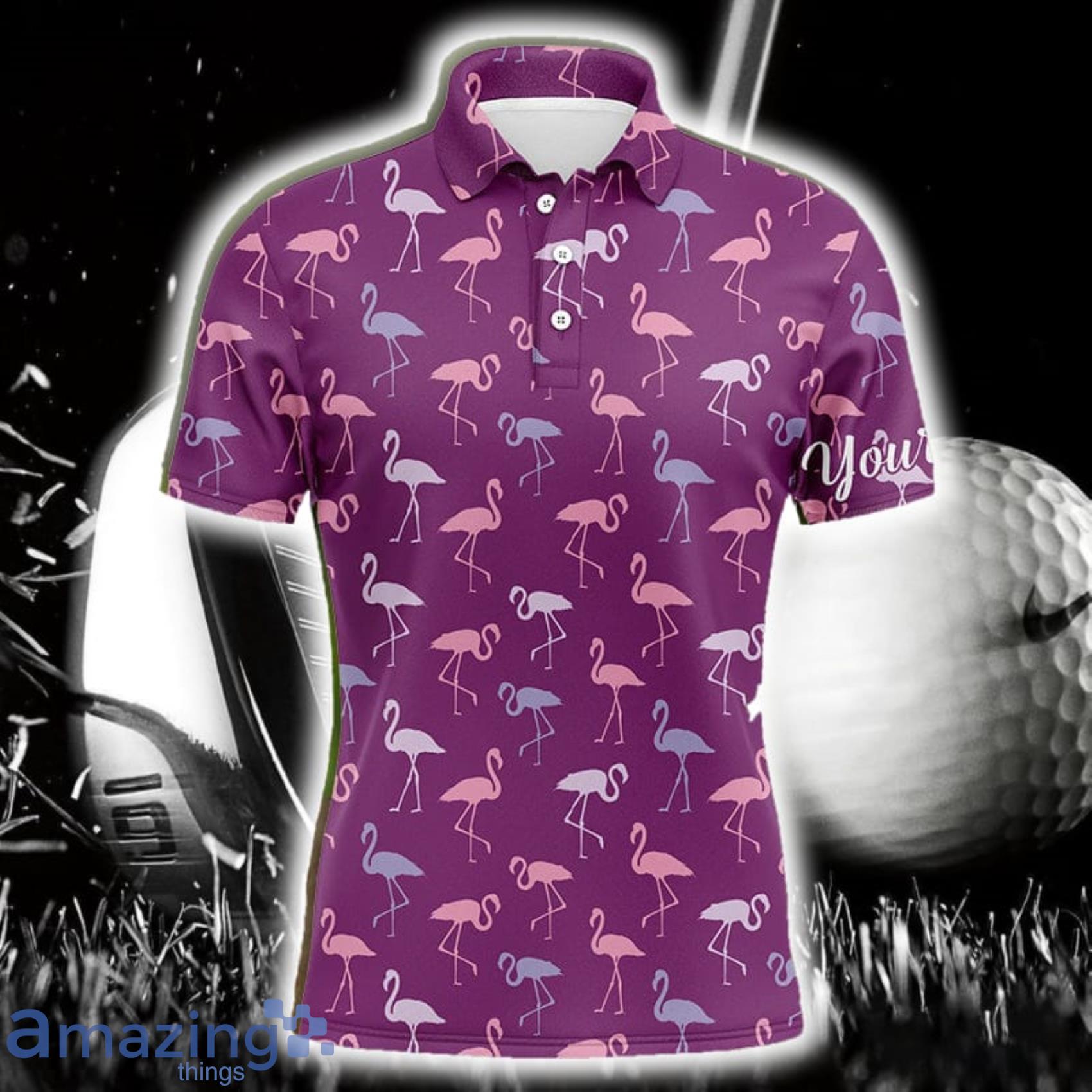 Some of the Custom Name And Team Name Purple Flamingos Birds Pattern Tropical Polo Shirt For Men And Women Gift For Golfer photos