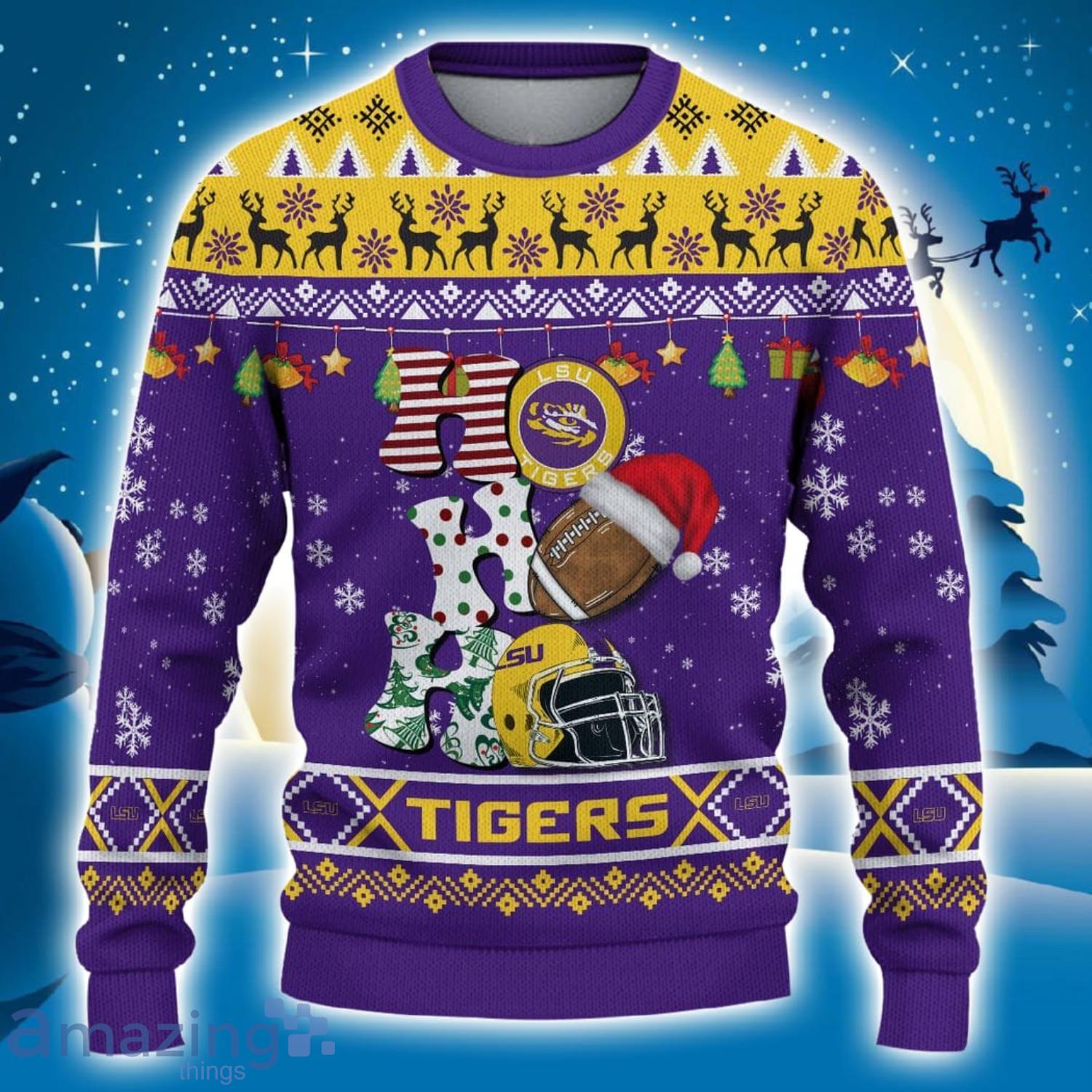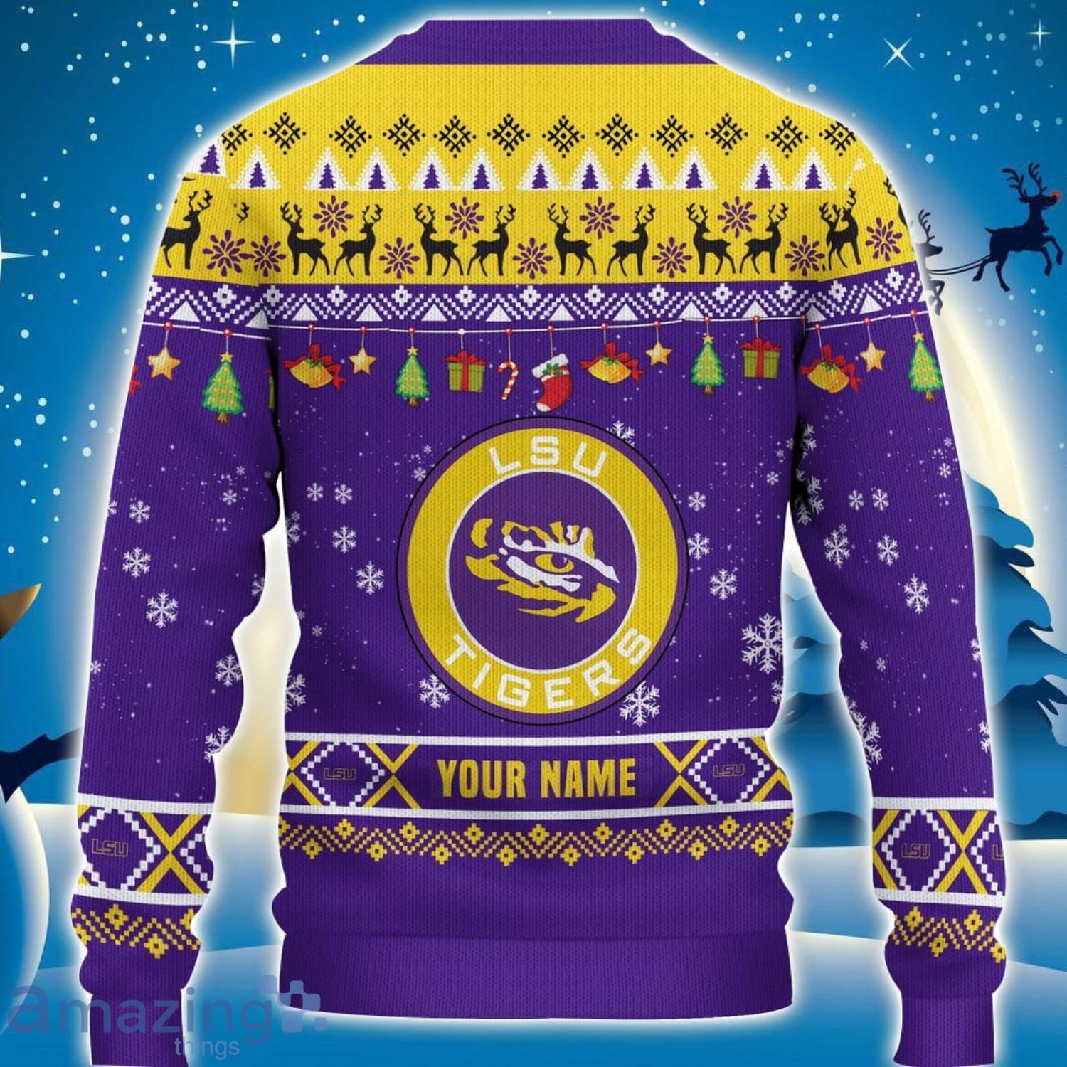 Custom Name For NCAA Fans LSU Tigers HO HO HO Ugly Christmas Sweater Funny Christmas Gift