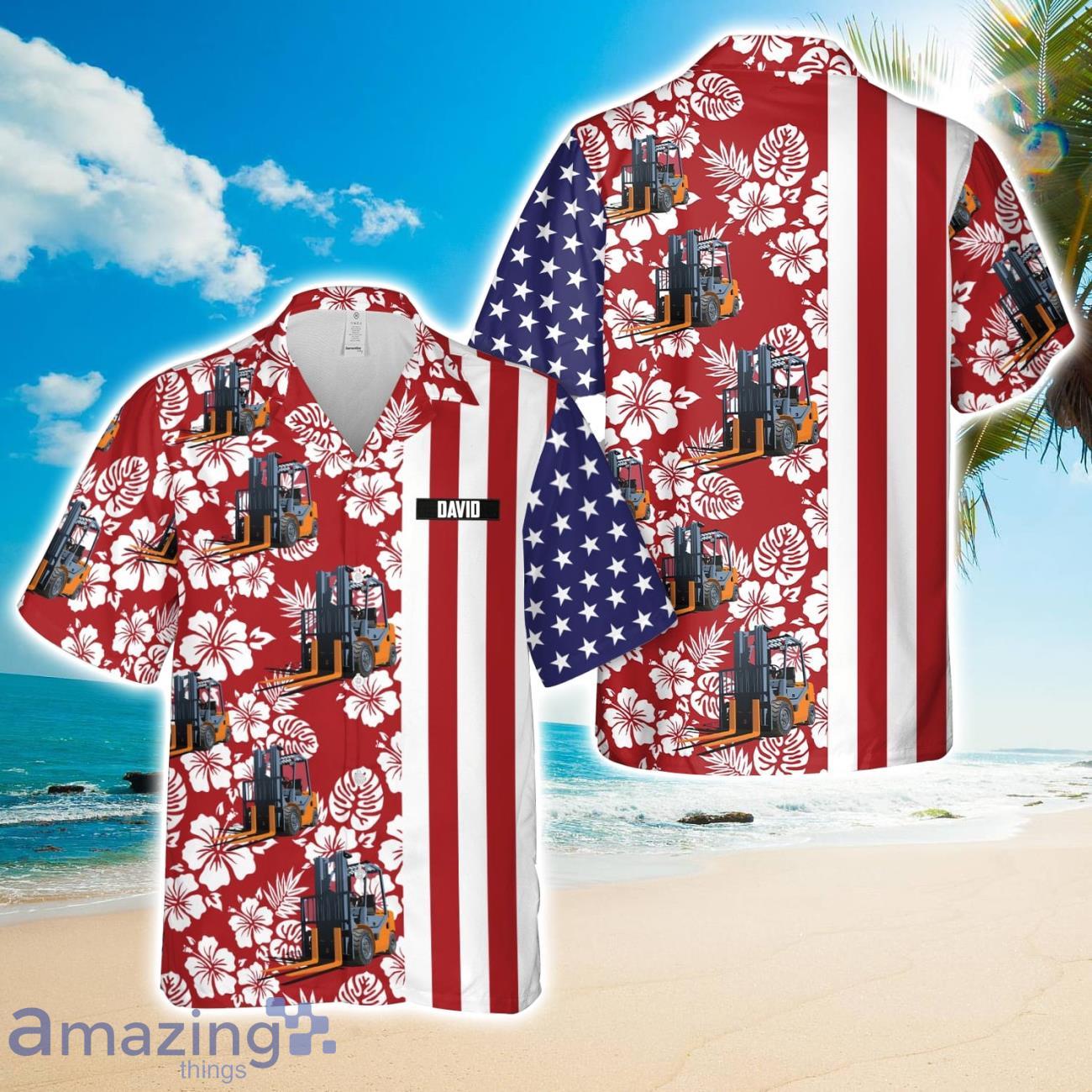 Custom Name Forklift Flag Hawaiian Shirt Summer Vacation Button Shirt Details: