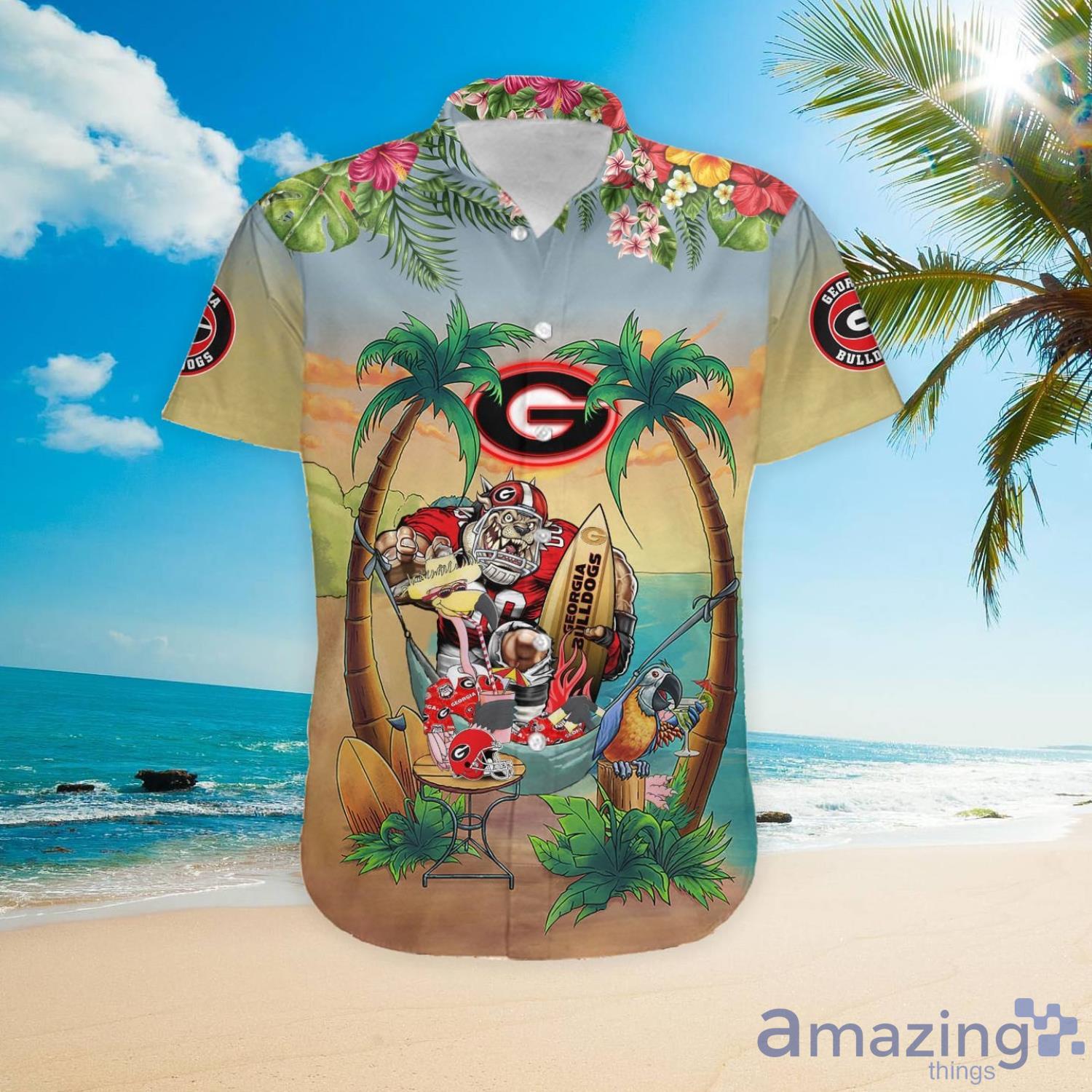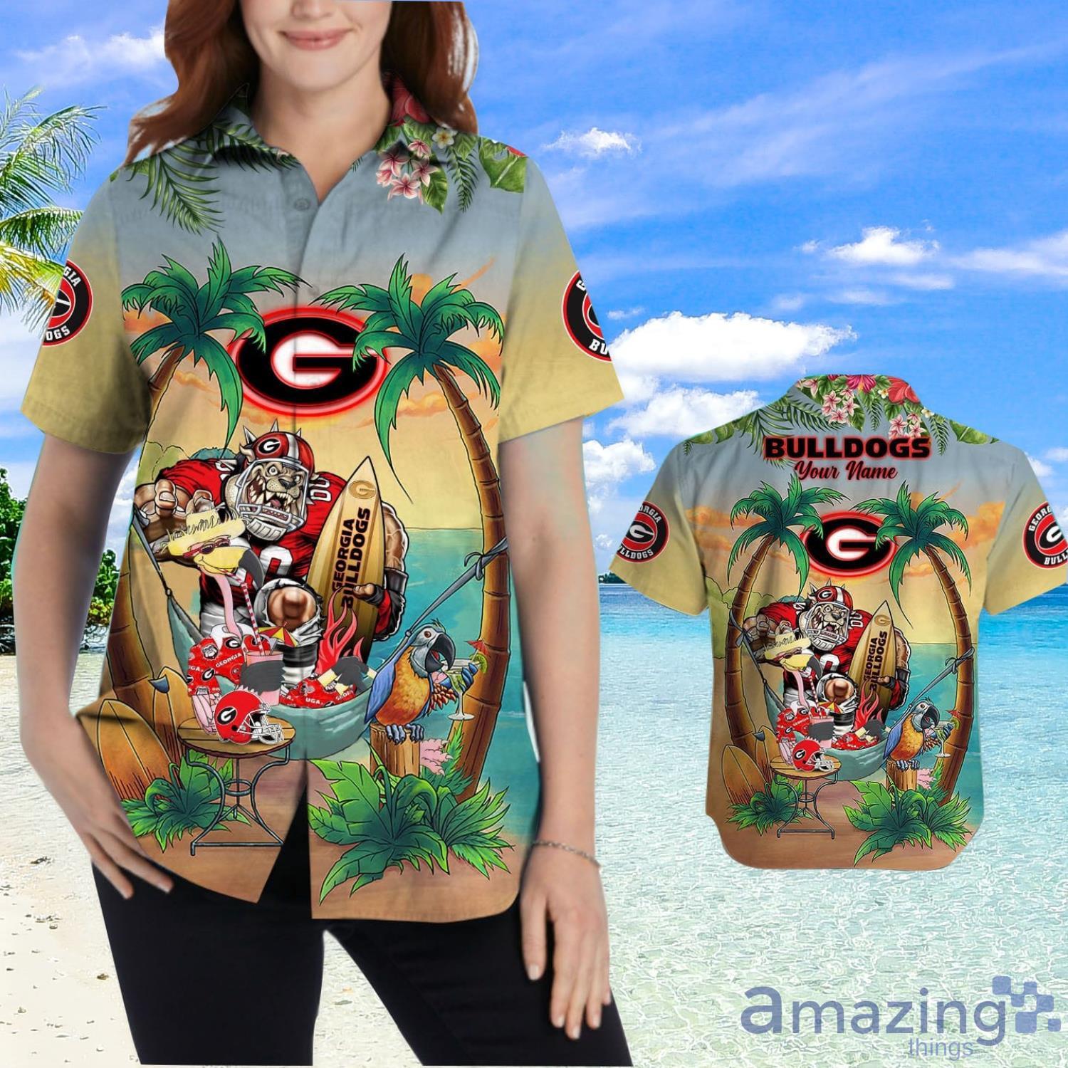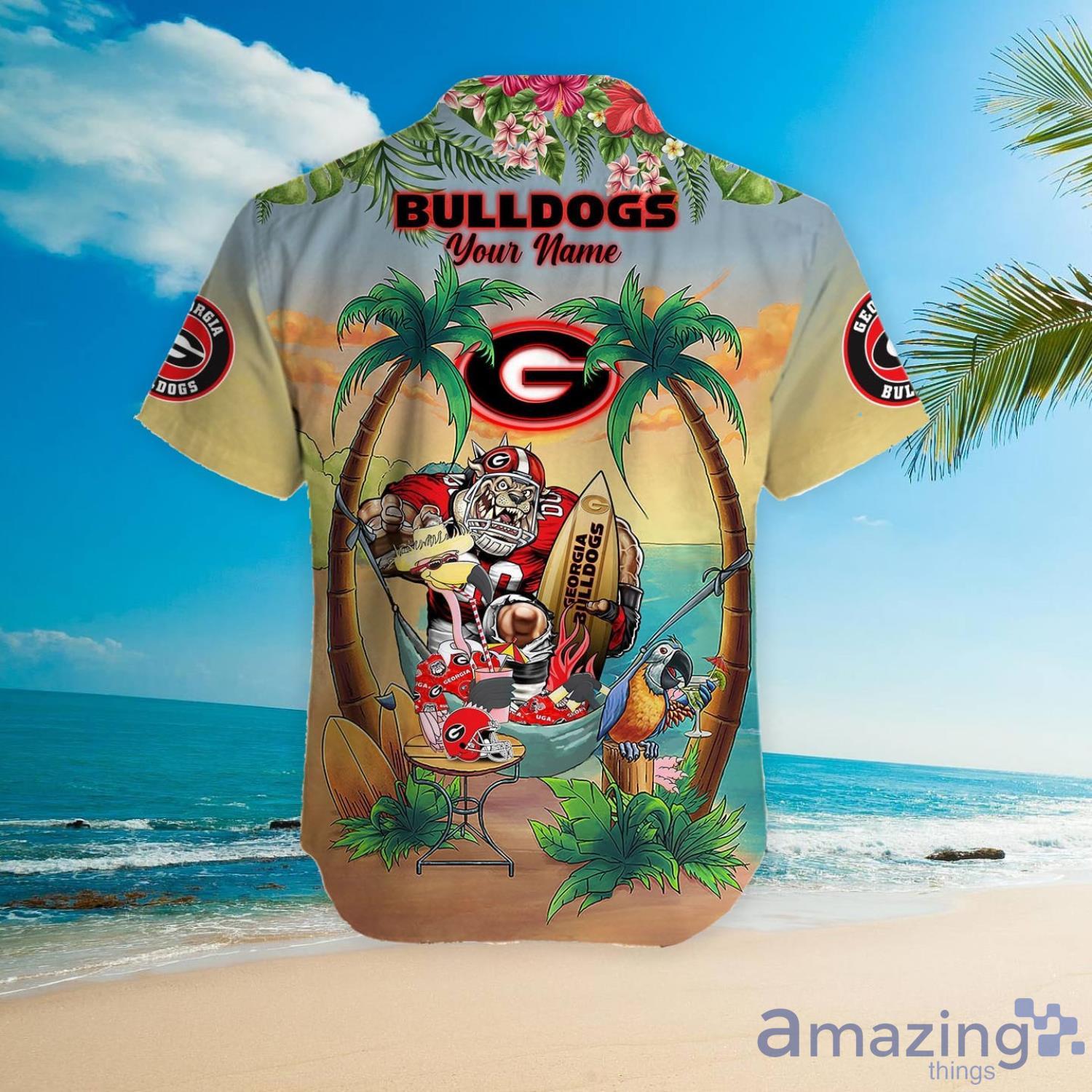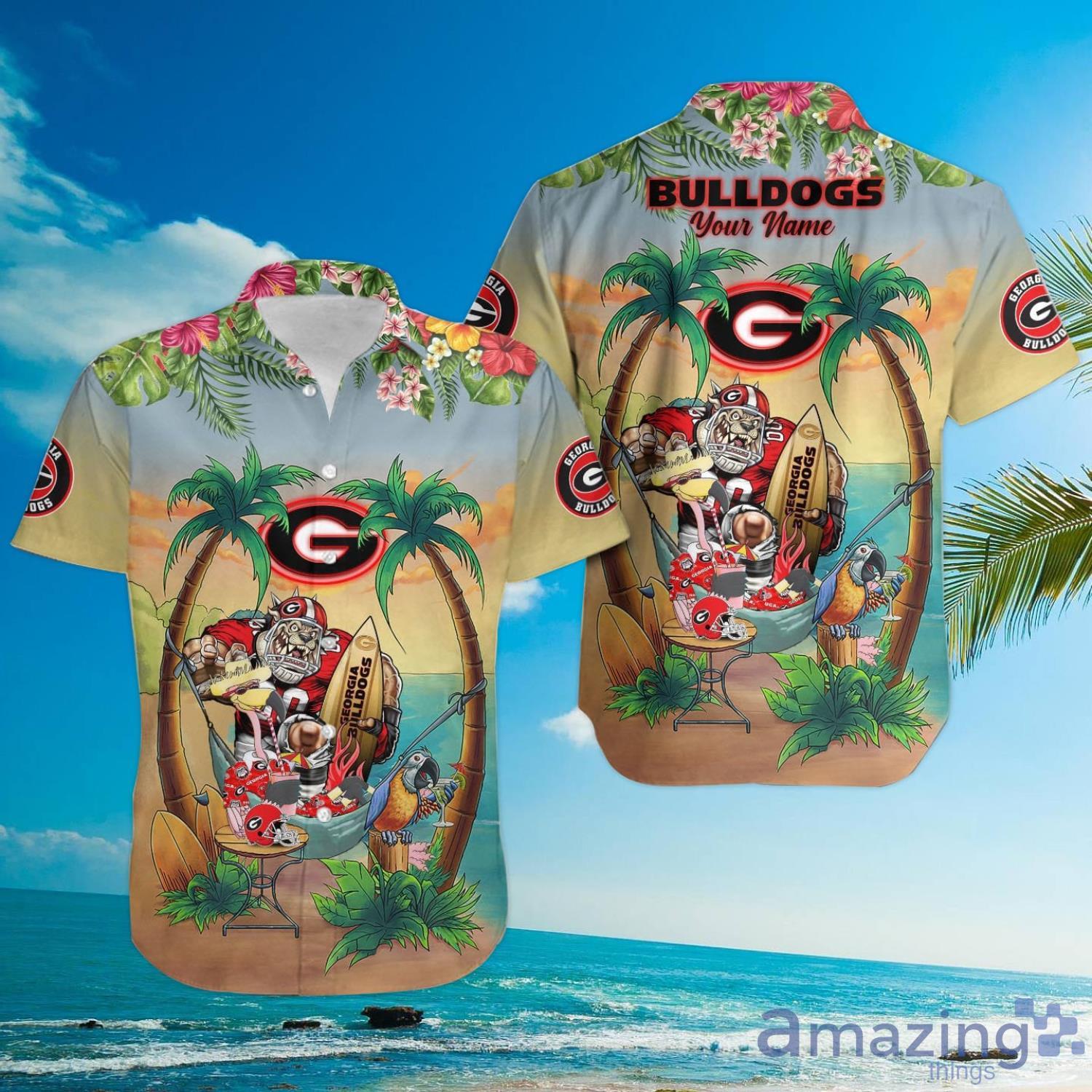 Custom Name Georgia Bulldogs With Flamingo Parrot Tropical Beach Coconut Tree Hawaiian Shirt