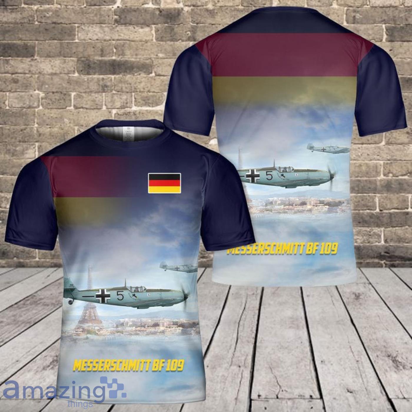 Are you a fan of the German Air Force, particularly the iconic Messerschmitt Bf 109 aircraft? Look no further than our Custom Name German Air Force Messerschmitt Bf 109 3D T-Shirt!
