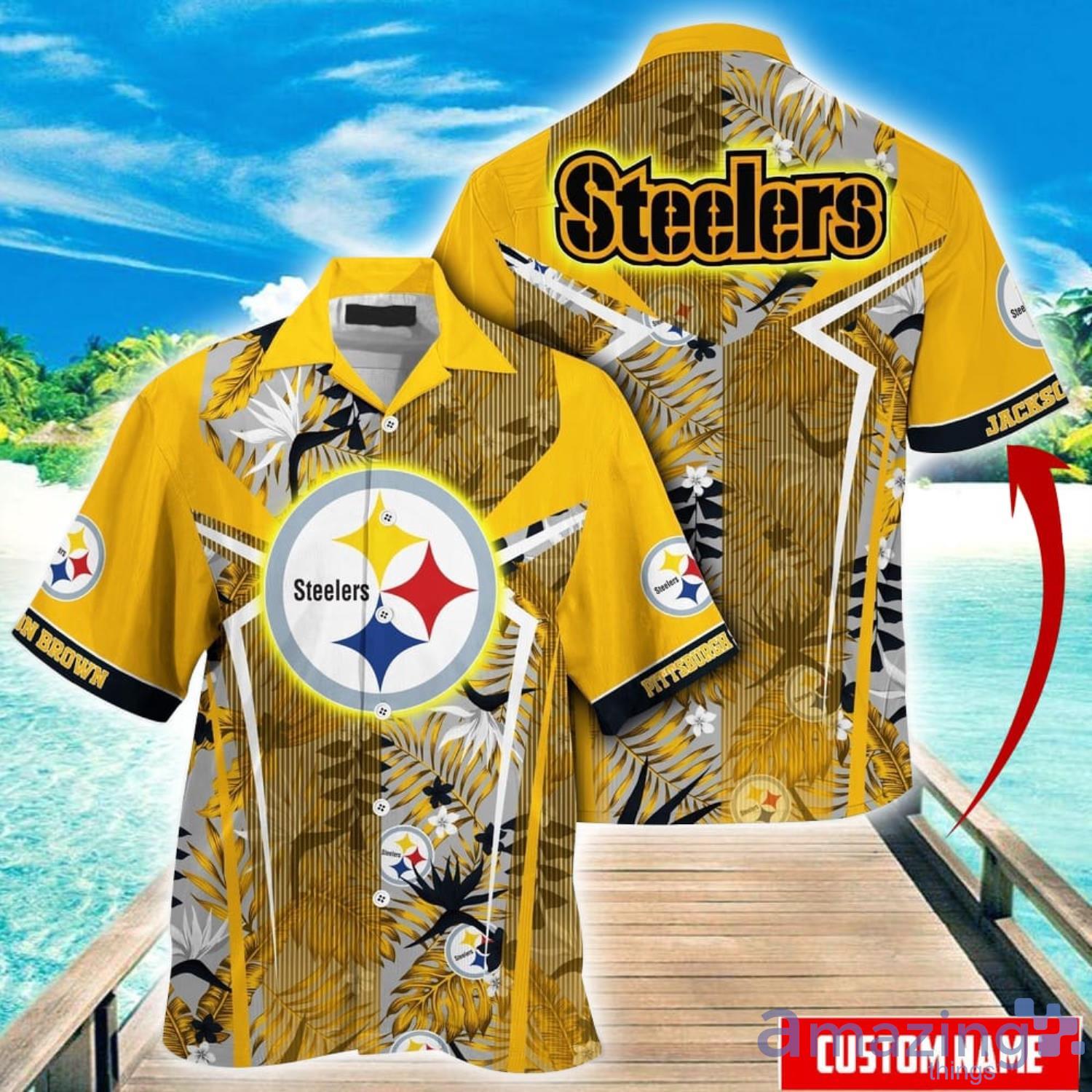 Custom Name Hawaii Shirt NFL Pittsburgh Steelers Hawaiian Shirt Summer Football Tropical Shirt For Fans Details: