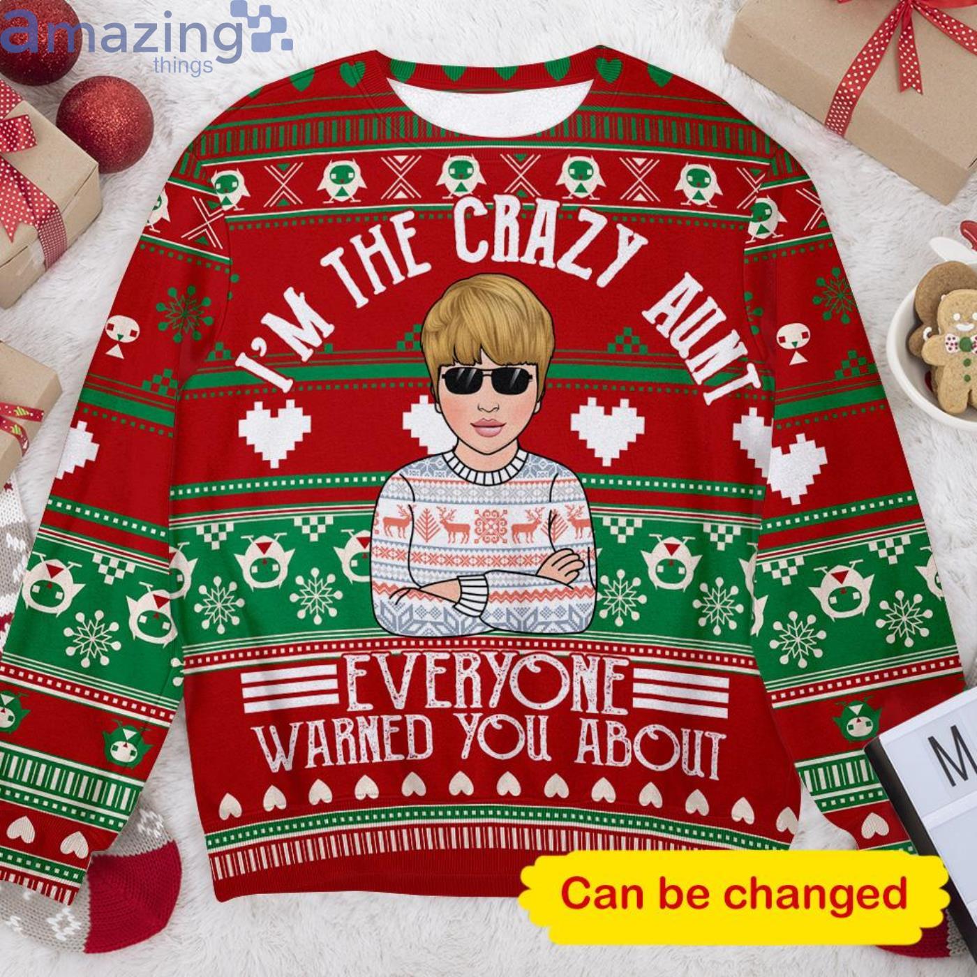 Custom Name I’m The Crazy Aunt Everyone Warned You About Christmas Ugly Sweater Informations: