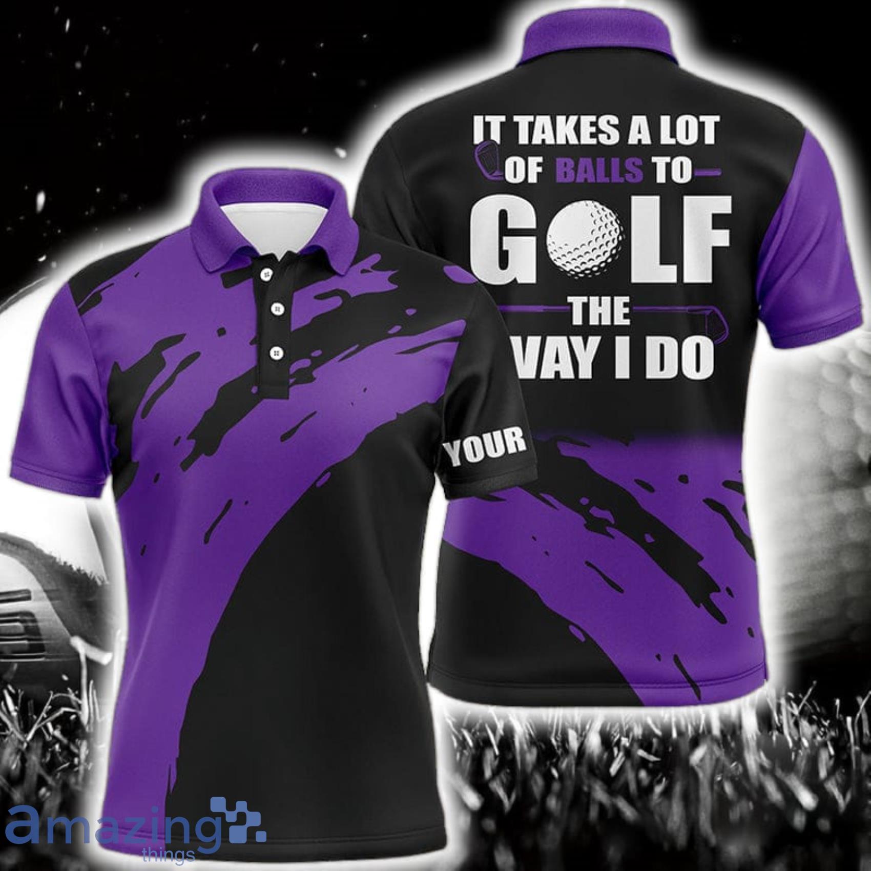 Some of the Custom Name It Takes A Lot Of Balls To Golf The Way I Do Purple Polo Shirt For Men And Women Gift For Golfer photos