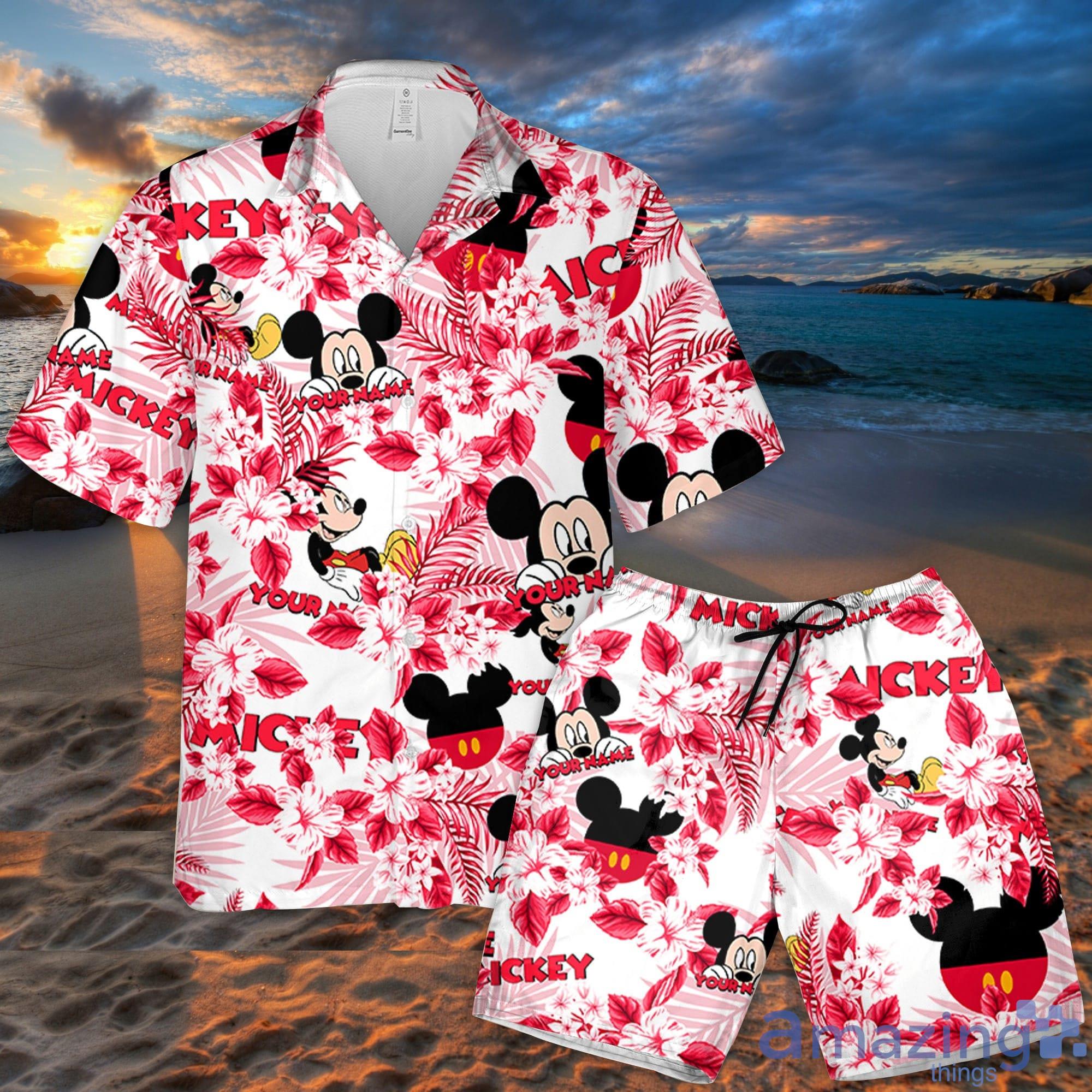 Some of the Custom Name Jersey Mickey Smile Flowers Pattern 3D All Over Print Combo Hawaiian Shirt And Shorts Disneyland Beach Cute Gifts For Fans photos