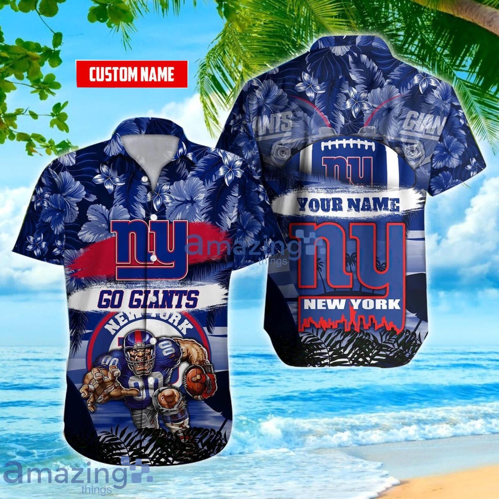 Some of the Custom Name New York Giants Mascot And Flower Print Hawaiian Shirt photos