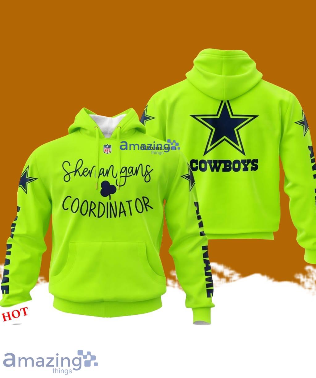 Get ready to show off your team pride in style with our Custom Name NFL Dallas Cowboys Shenanigans Coordinator Hoodie! This classic style hoodie is 3D printed with high-quality materials to ensure a comfortable fit and long-lasting wear. Personalize it with your name and let everyone know who the true shenanigans coordinator is. Perfect for game days, tailgates, or just lounging at home, this hoodie is a must-have for any die-hard Dallas Cowboys fan. Stay warm and stylish while cheering on your favorite team with our custom hoodie!