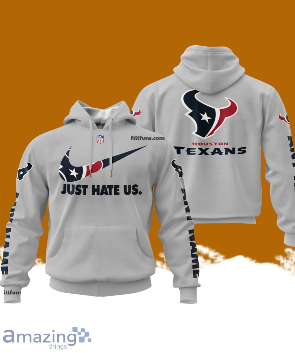 Custom Name NFL Houston Texans Just Hate Us Grey Hoodie 3D Printed Classic Style