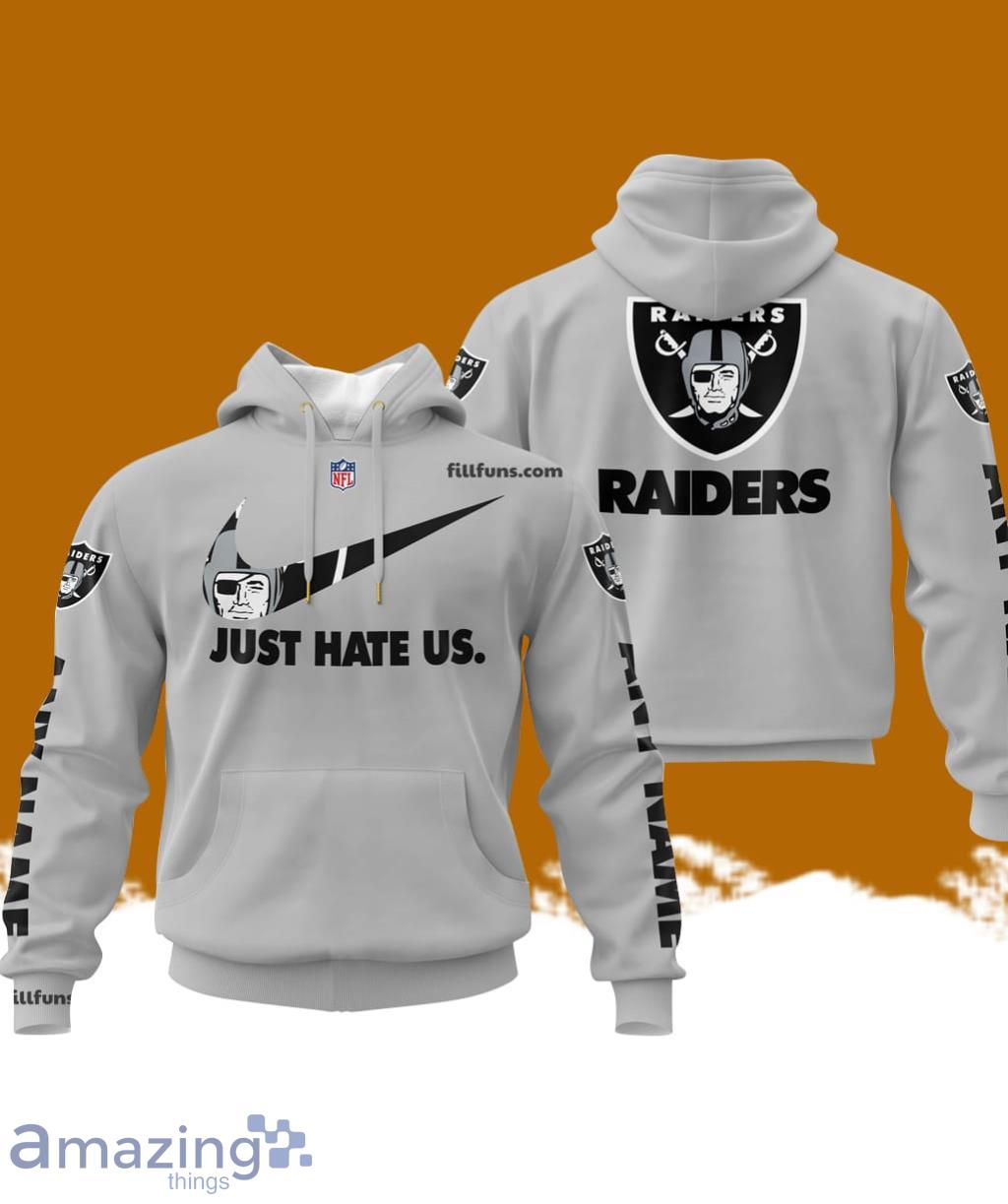 Custom Name NFL Las Vegas Raiders Just Hate Us Grey Hoodie 3D Printed Classic Style Information