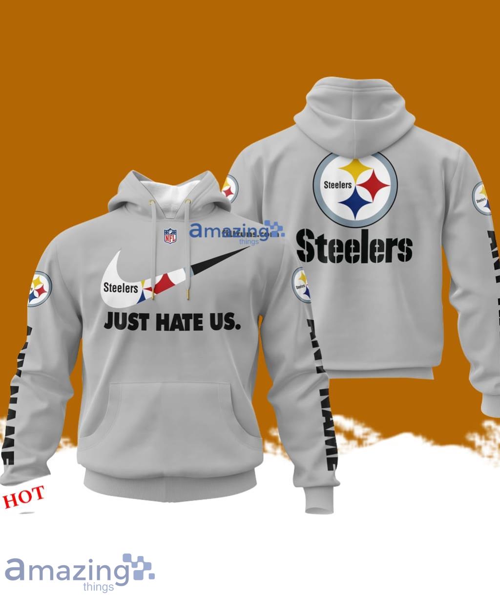 Some of the Custom Name NFL Pittsburgh Steelers Just Hate Us Grey Hoodie 3D Printed Classic Style photos