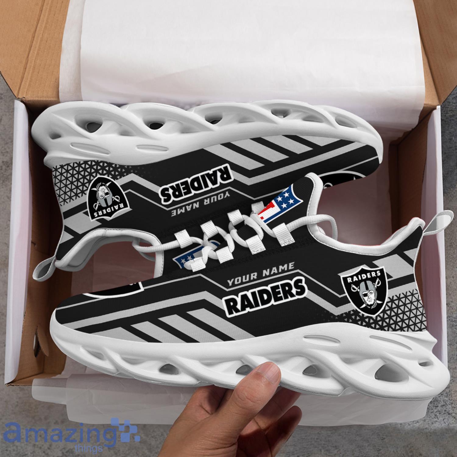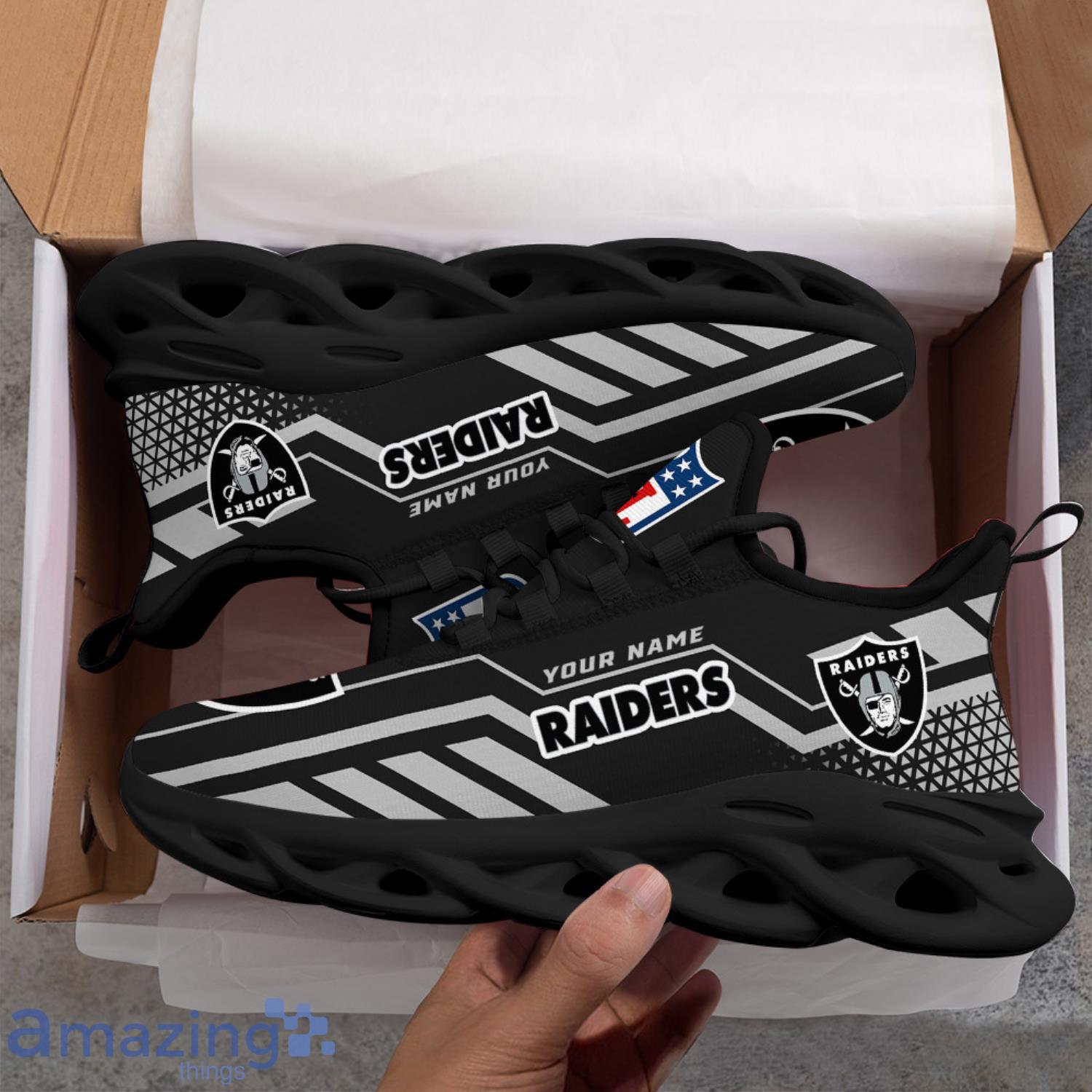So why settle for a boring pair of sneakers when you can have the Custom Name NFL Running Sneakers Las Vegas Raiders Max Soul Shoes? Order yours today and show off your team spirit in style!