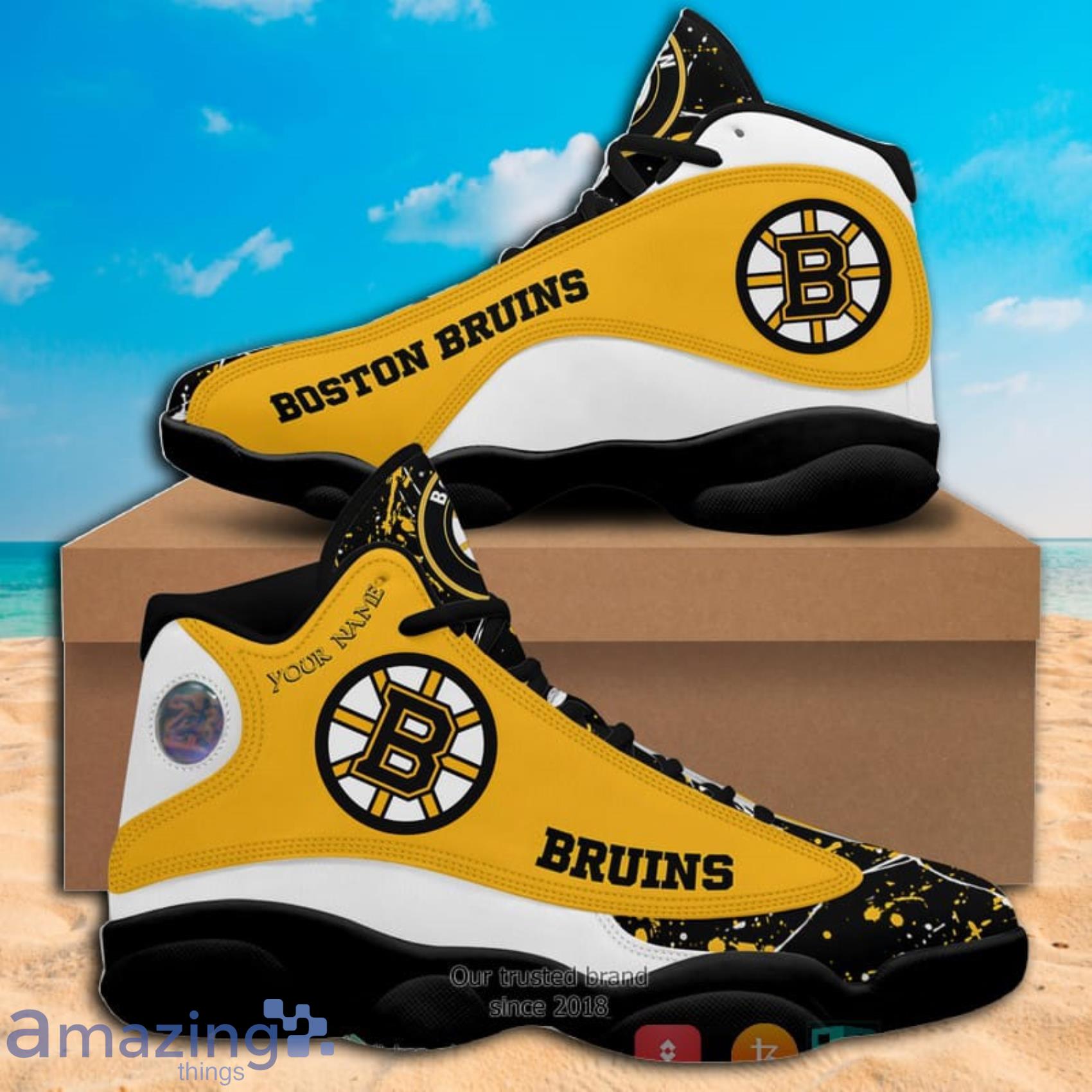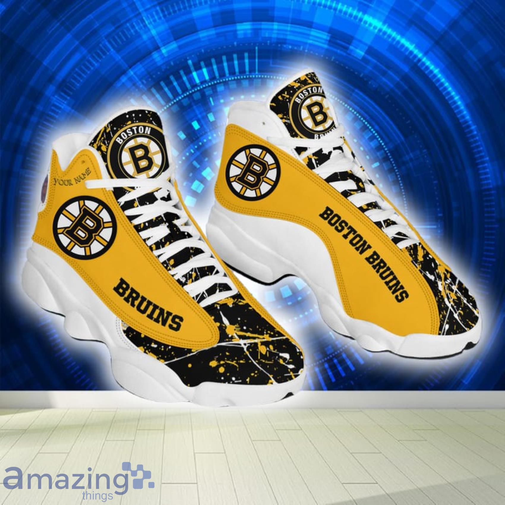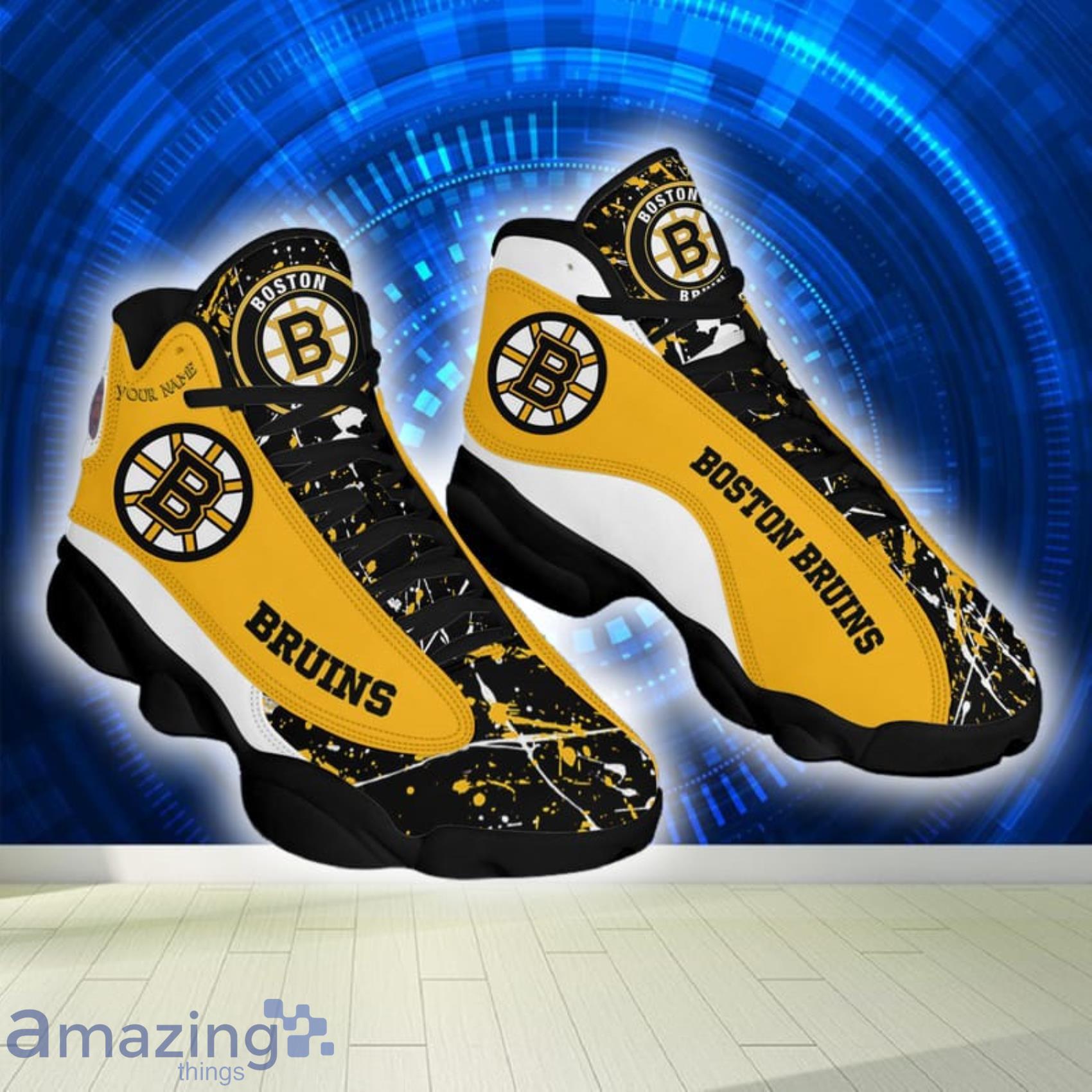 Custom Name Paint Stain NHL Boston Bruins Air Jordan 13 Shoes
