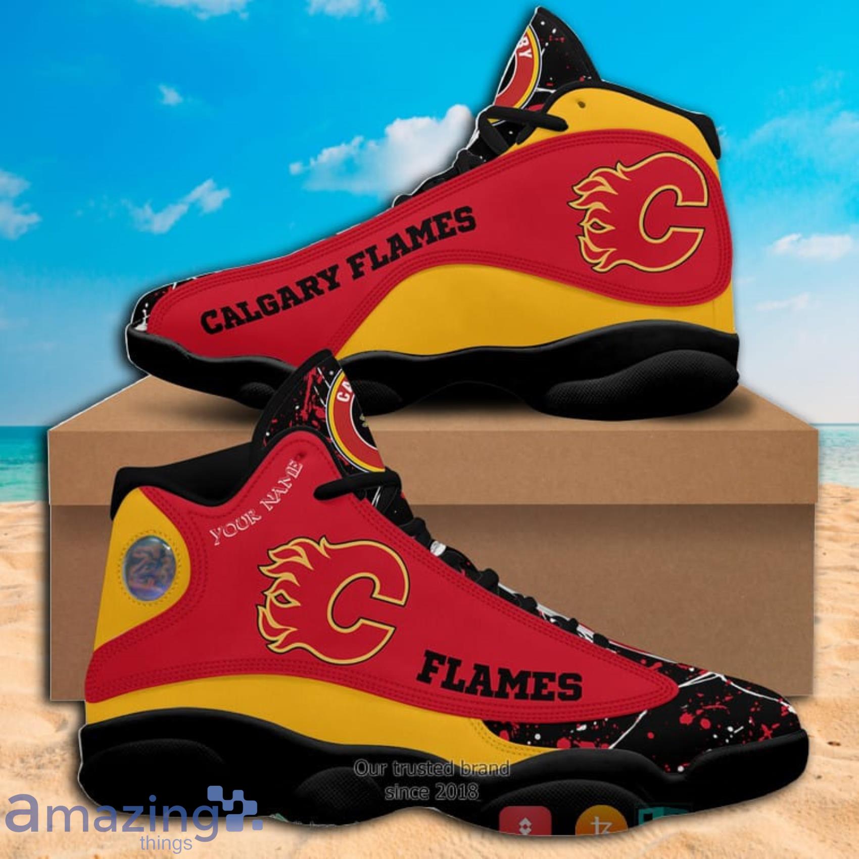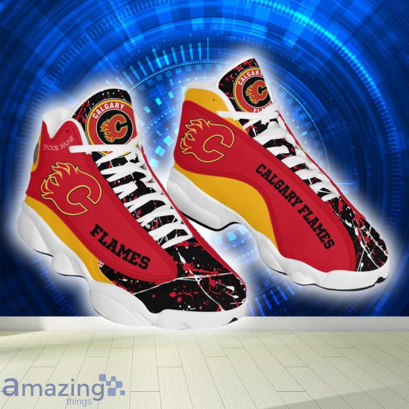 Custom Name Paint Stain NHL Calgary Flames Air Jordan 13 Shoes Information