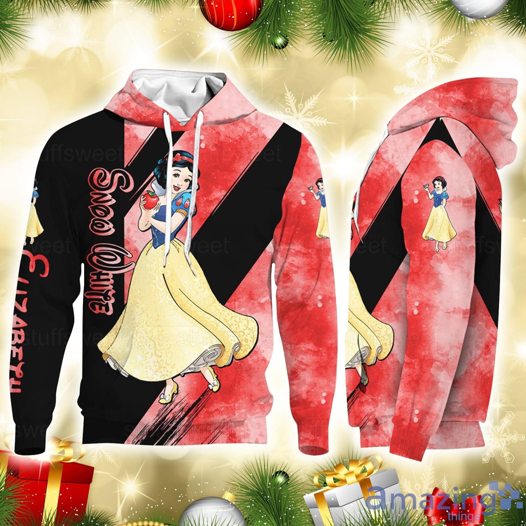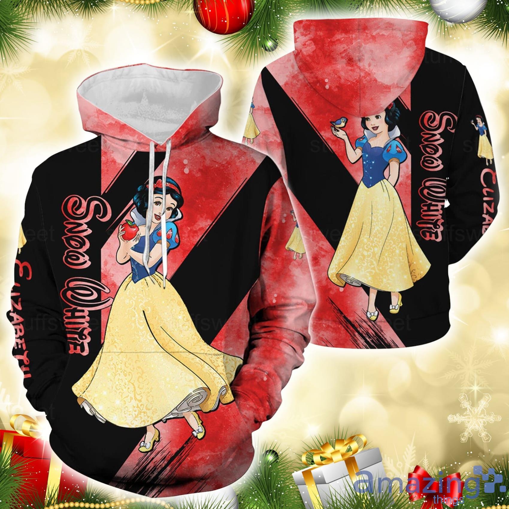 The hoodie features a stunning image of Snow White, complete with her iconic red bow and striking blue and yellow dress. You can even customize the hoodie with a name of your choosing, making it the perfect personalized gift for your mom or girlfriend.