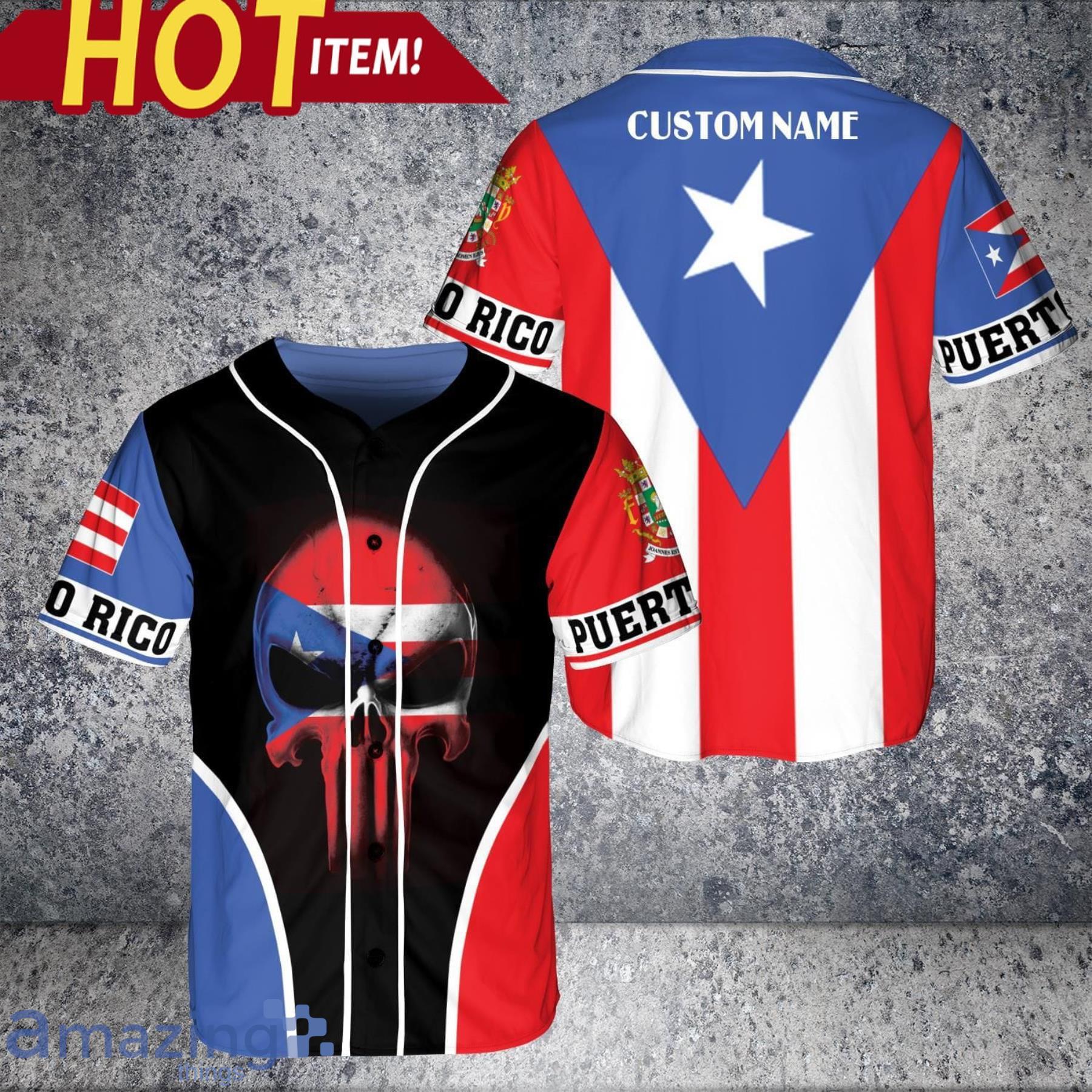 Some of the Custom Name Puerto Rico Skull And Flag Style All Over Print Baseball Jersey photos