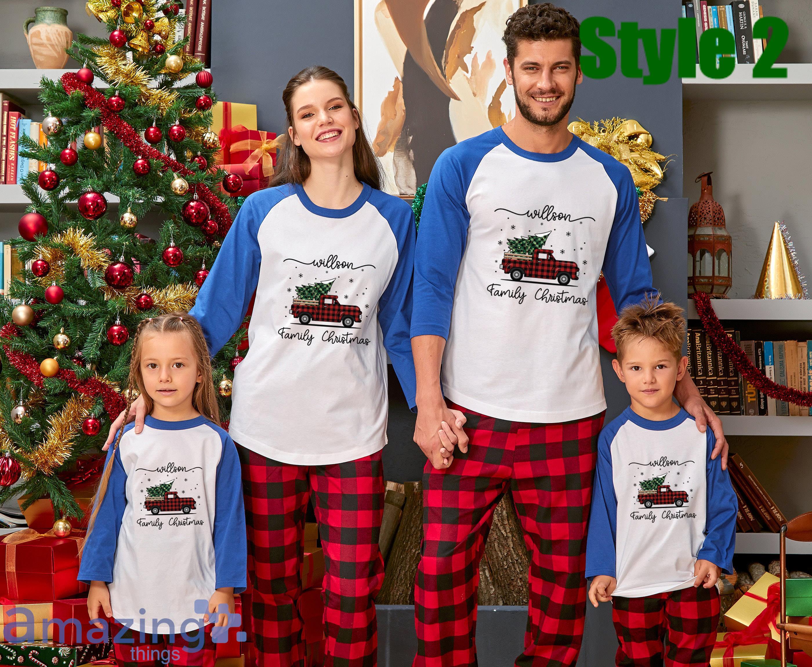 Some of the Custom Name Red Christmas Truck Christmas Matching Family Pajamas photos