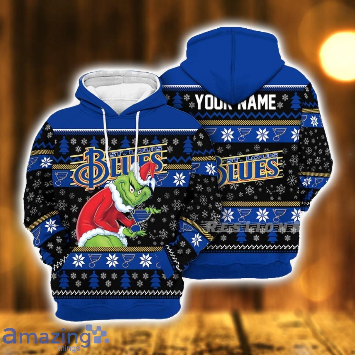 Custom Name St. Louis Blues Grinchmas Ugly Christmas 3D Hoodie Christmas Gift For Men And Women Information