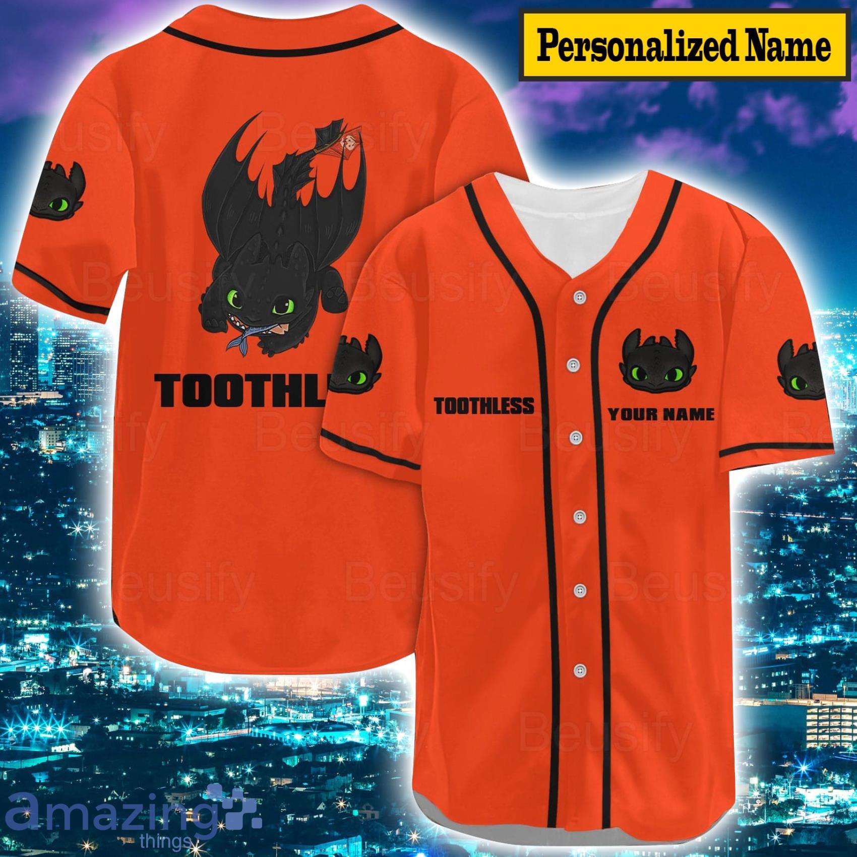 Custom Name Toothless Baseball Jersey Shirts, Toothless Shirts, Dragon Jersey Men Orange