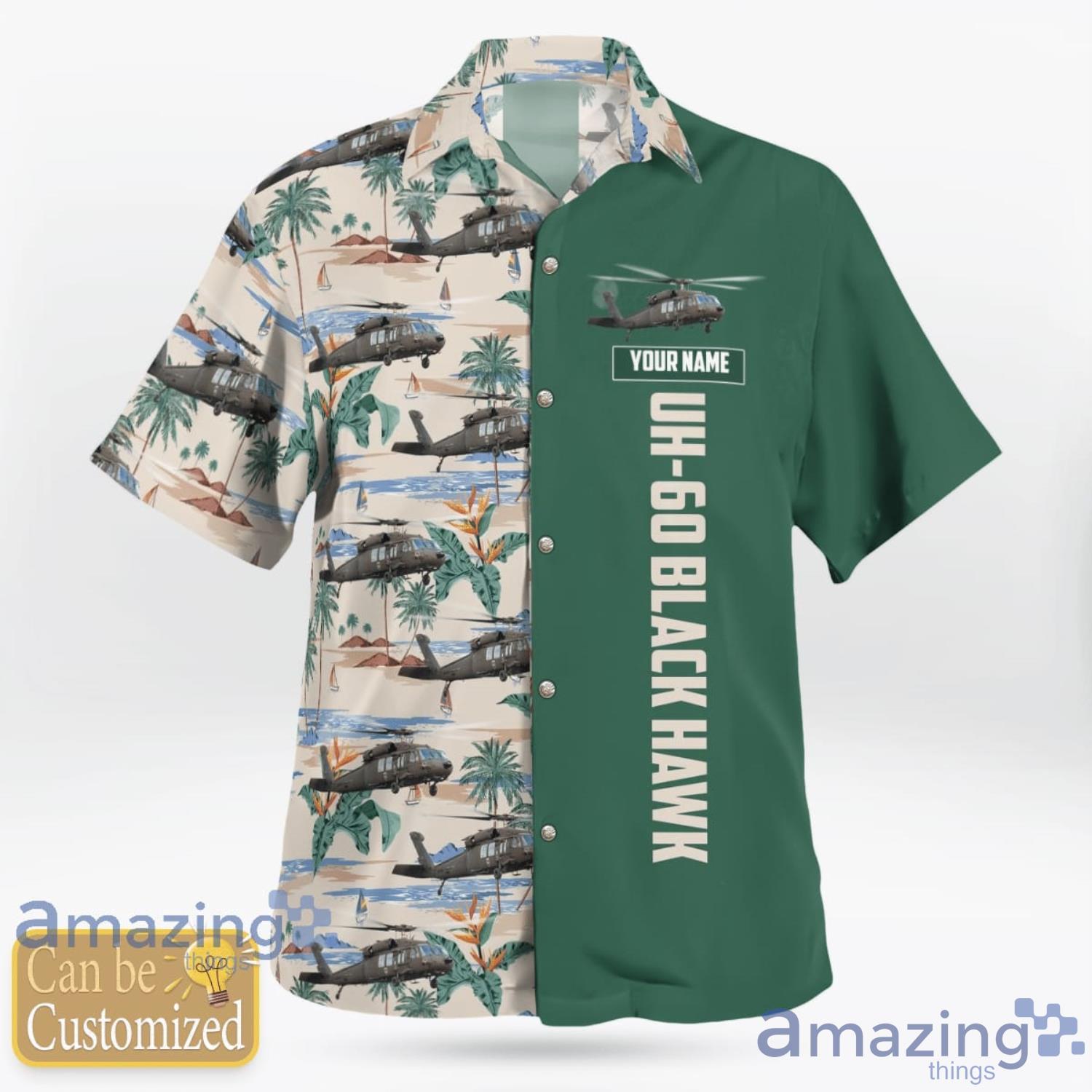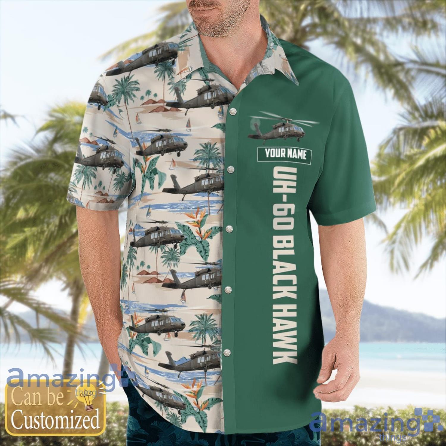Custom Name United States Military Helicopters Sikorsky UH-60 Black Hawk Hawaiian Shirt Aloha Summer Gift For Men And Women Details:
