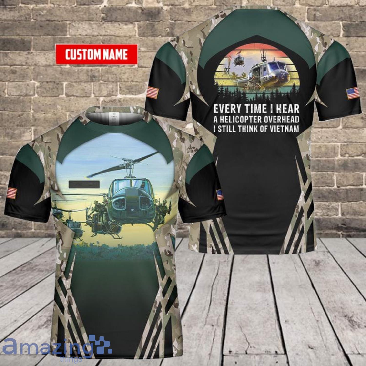Whether you’re heading to a Fourth of July BBQ, spending the day at the beach, or just looking for a unique and meaningful gift for a loved one, our Custom Name US Army Bell UH-1 Huey 3D T-Shirt is the perfect choice. So why wait? Order yours today and show the world that you’re proud to be an American and a supporter of our brave men and women in uniform!