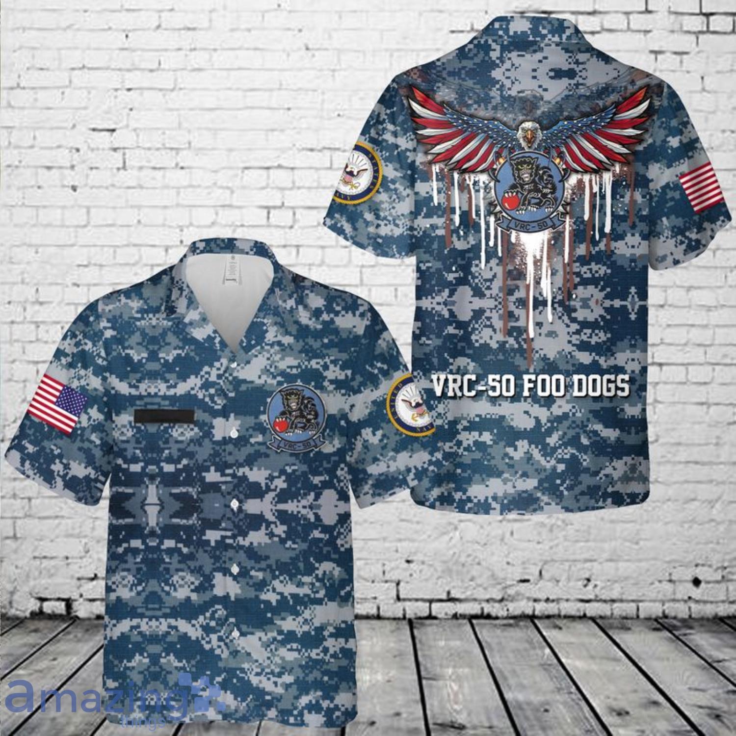 Custom Name US Navy VRC-50 Foo Dogs Hawaiian Shirt Summer Vacation Button Shirt