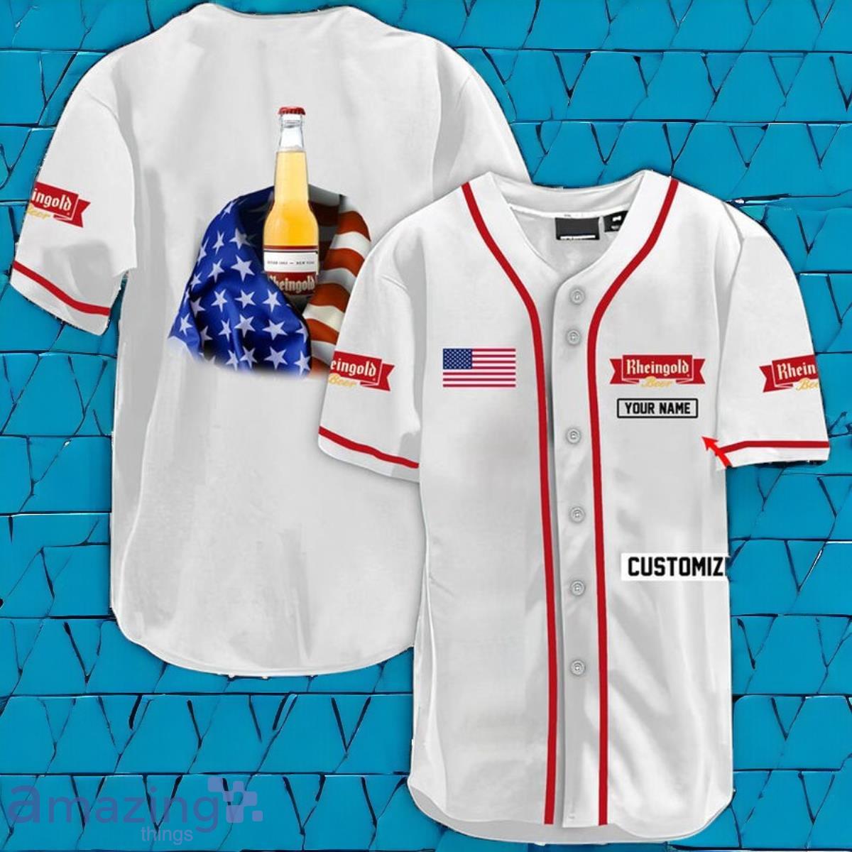Custom Name Vintage White USA Flag Rheingold Beer Baseball Jersey Shirt Best Gift