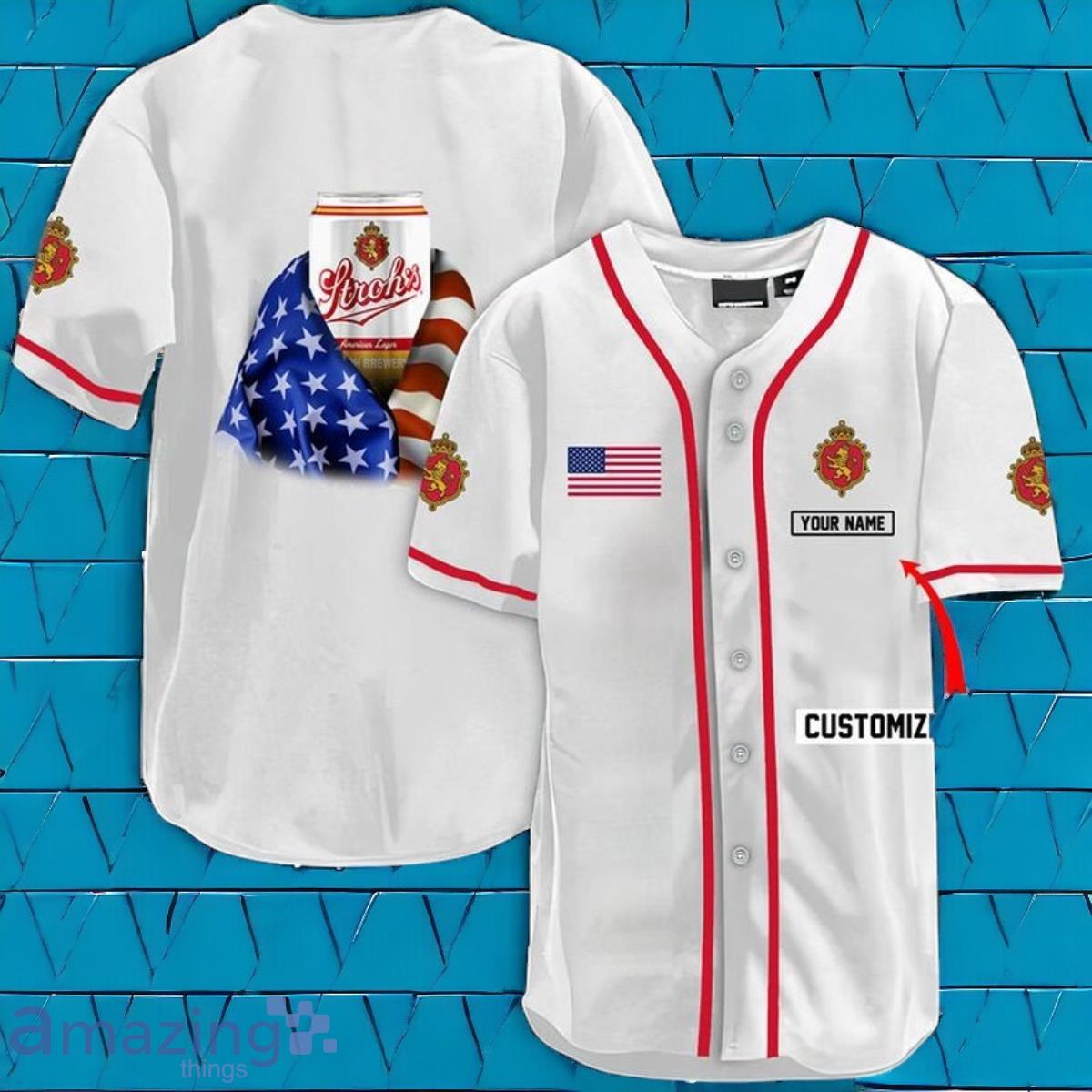 Custom Name Vintage White USA Flag Stroh’s Beer Baseball Jersey Shirt Best Gift Information: