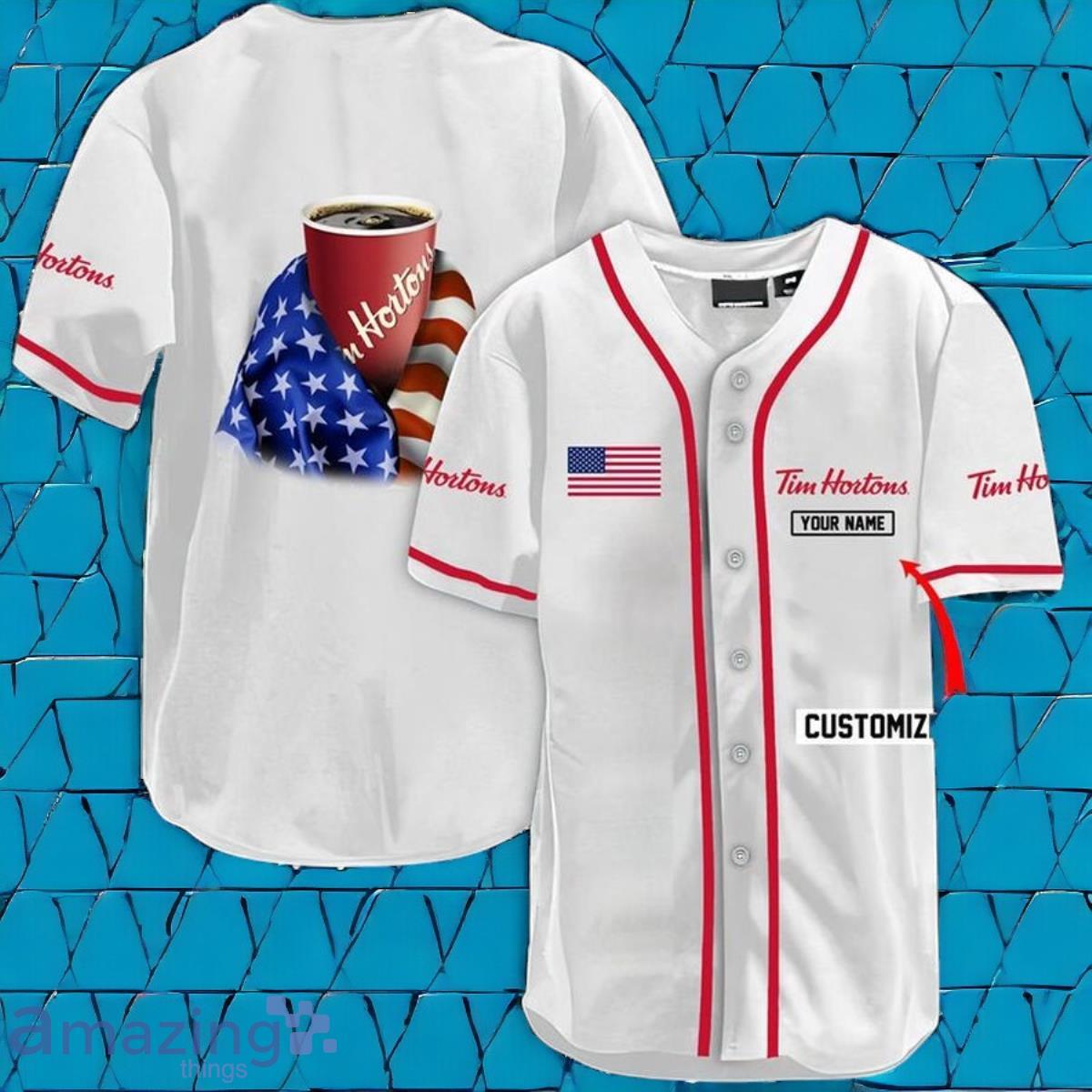 Some of the Custom Name Vintage White USA Flag Tim Hortons Baseball Jersey Shirt Best Gift photos