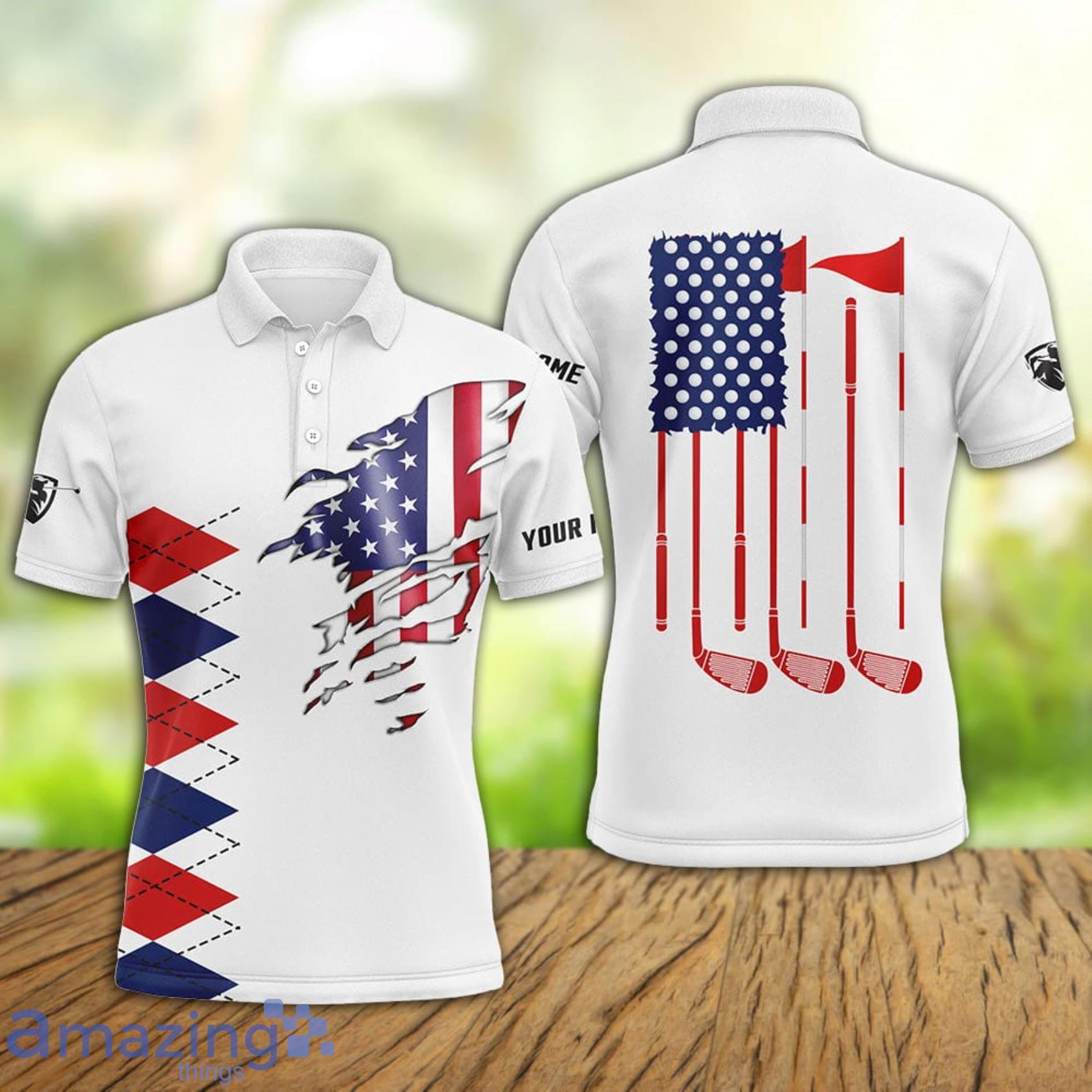 So, why settle for a generic 4th of July outfit when you can make a statement with our Custom Name White American Flag 4th July Polo Shirt? Embrace your love for your country while showcasing your own personal flair. Order yours today and get ready to turn heads at every celebration!